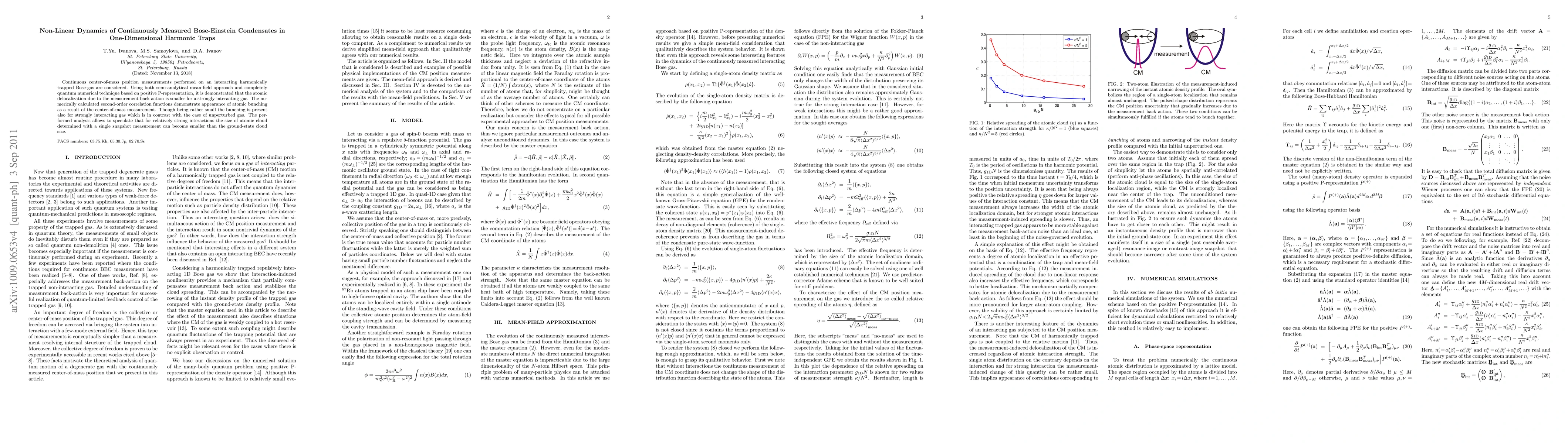 Continuous center-of-mass position measurements performed on an interacting harmonically trapped Bose-gas are considered. Using both semi-analytical mean-field approach and completely quantum numerical technique based on positive P-representation, it is demonstrated that the atomic delocalization due to the measurement back action is smaller for a strongly interacting gas. The numerically calculated second-order correlation functions demonstrate appearance of atomic bunching as a result of the center-of-mass measurement. Though being rather small the bunching is present also for strongly interacting gas which is in contrast with the case of unperturbed gas. The performed analysis allows to speculate that for relatively strong interactions the size of atomic cloud determined with a single snapshot measurement can become smaller than the ground-state cloud size.
