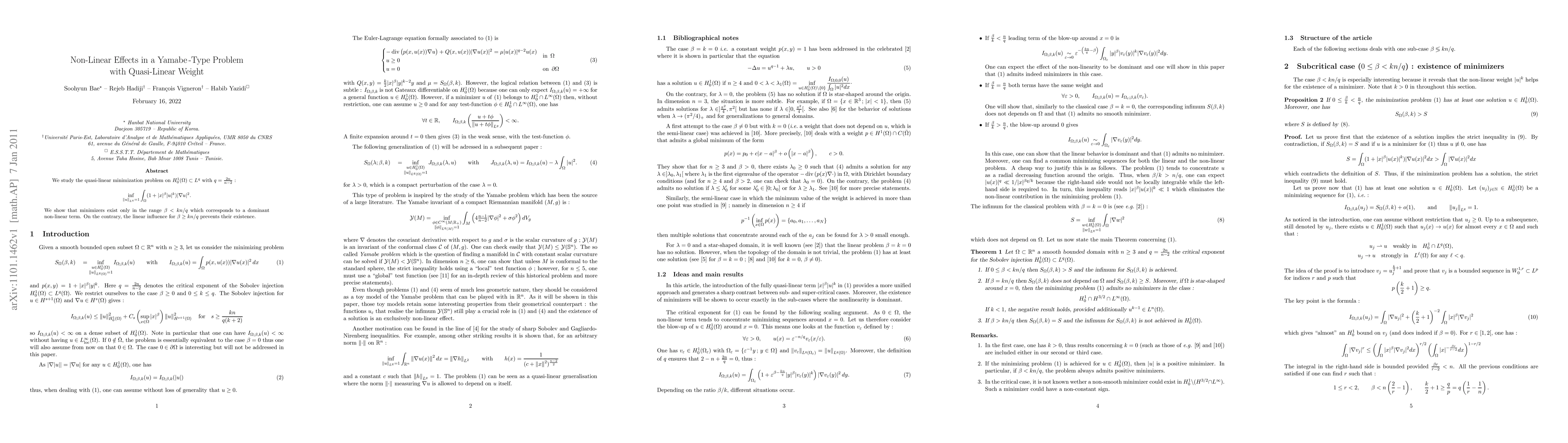 Researchers studied a minimization problem with a non-linear term that dominates when certain conditions are met, preventing its existence otherwise.