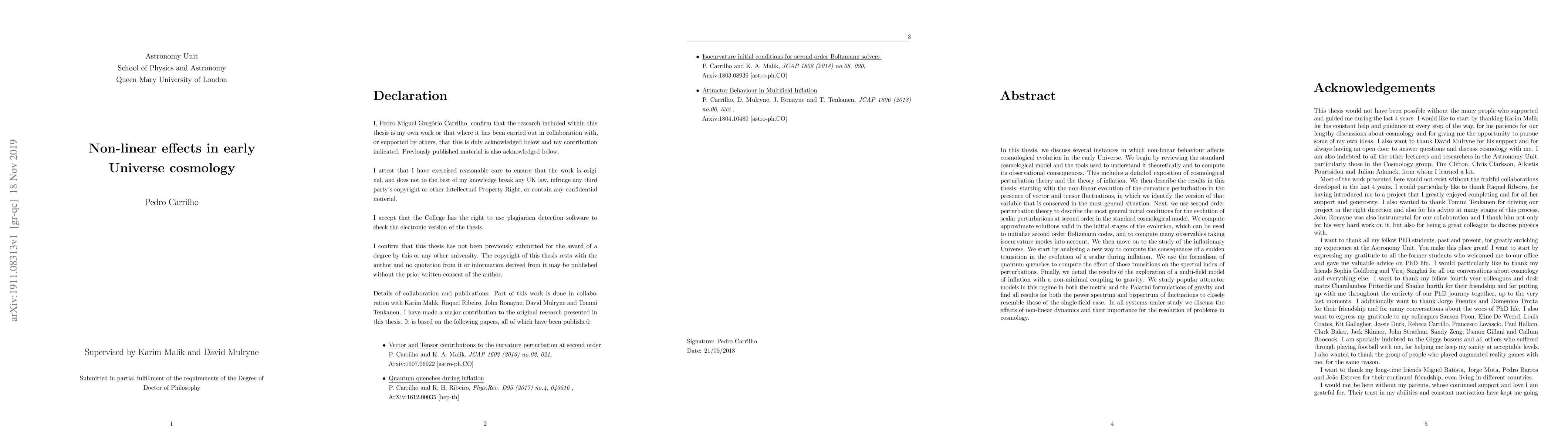 This thesis explores how non-linear effects influence early Universe cosmology, including the evolution of curvature perturbations, scalar perturbations, and inflationary dynamics, with significant implications for understanding cosmological evolution.