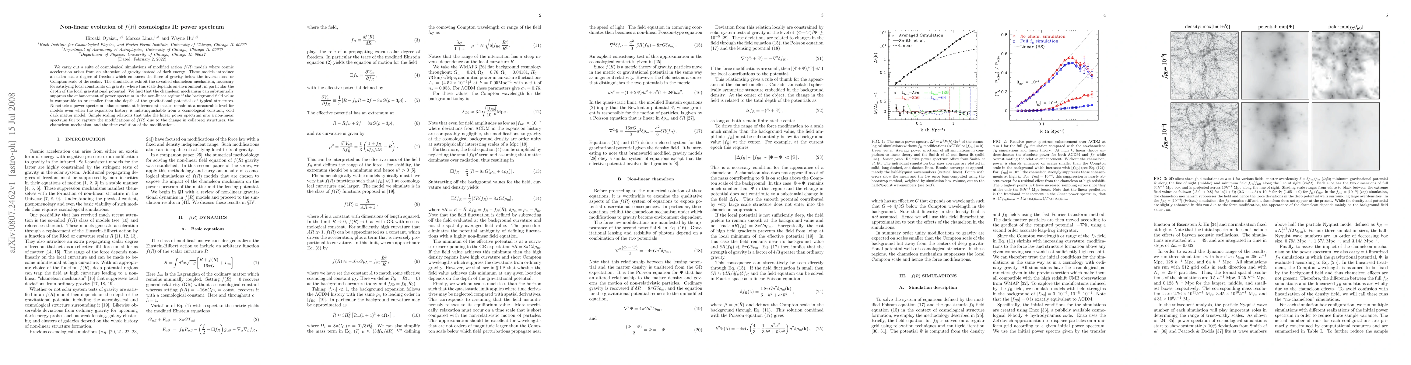 This paper presents cosmological simulations of modified gravity f(R) models, finding that the chameleon mechanism can suppress power spectrum enhancements in non-linear regimes, though measurable enhancements remain at intermediate scales. Simple scaling relations fail to account for the complex dynamics introduced by the chameleon mechanism and structural changes over time.