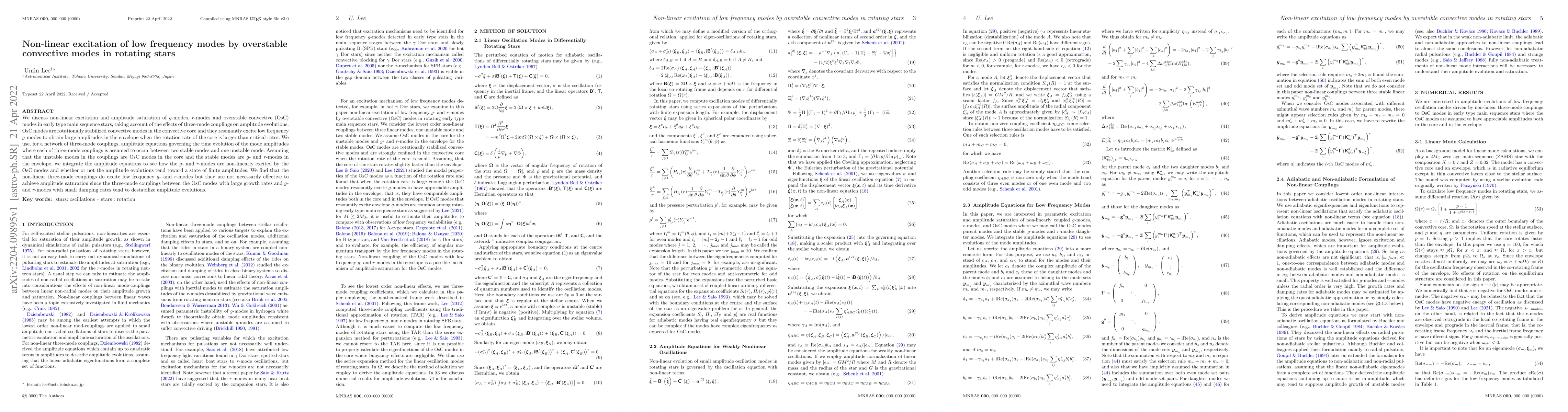 Researchers found that in early-type main sequence stars, overstable convective modes can non-linearly excite low-frequency g-modes and r-modes, but may not achieve amplitude saturation due to destabilizing effects.
