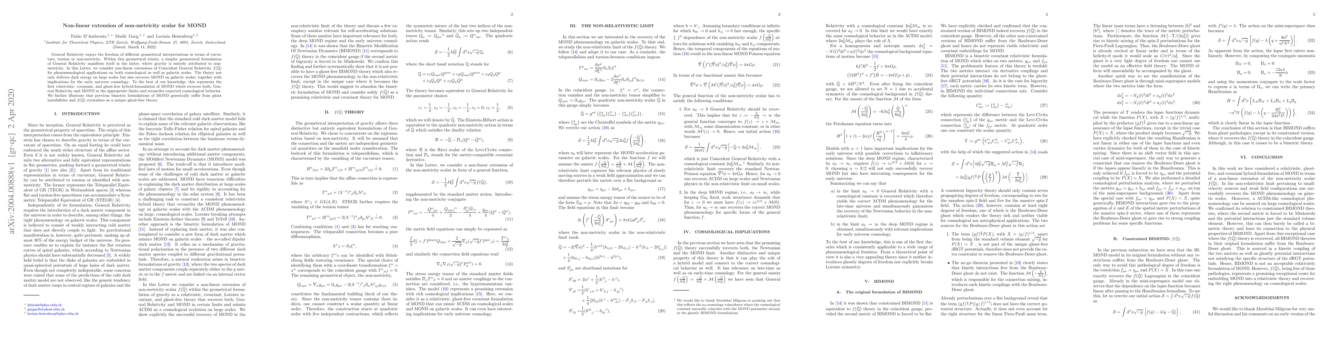 This paper proposes a non-linear extension of the non-metricity scalar for Modified Newtonian Dynamics (MOND), offering a relativistic, covariant, and ghost-free hybrid formulation that reconciles General Relativity and MOND. The theory provides dark energy on cosmological scales and MOND on galactic scales, avoiding ghost instabilities seen in previous bimetric formulations.