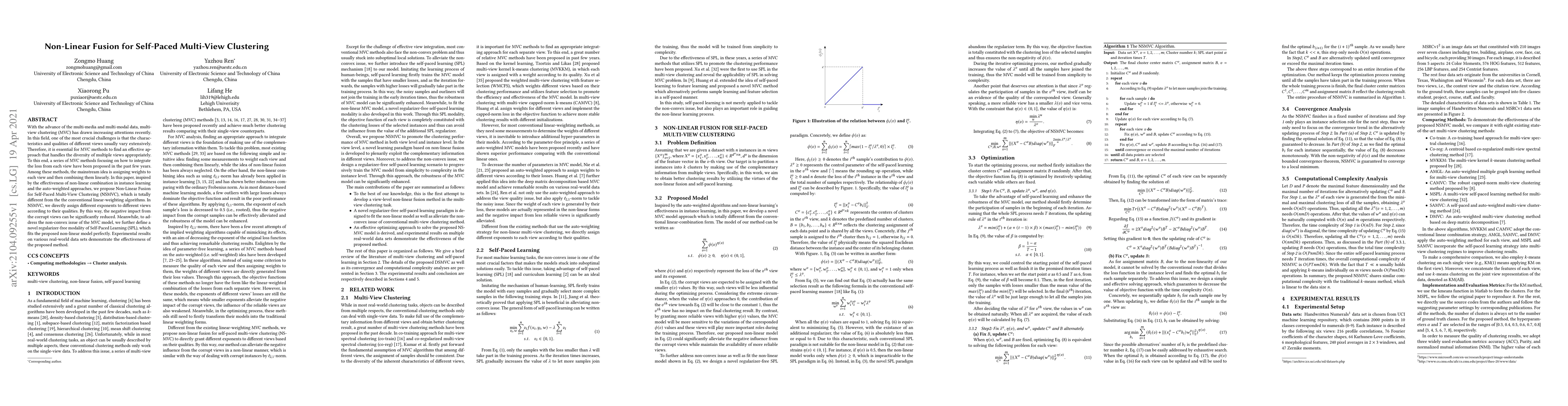 This paper proposes a new approach to multi-view clustering called Non-Linear Fusion for Self-Paced Multi-View Clustering (NSMVC), which uses non-linear combination of views with different exponents to reduce the impact of corrupt views.