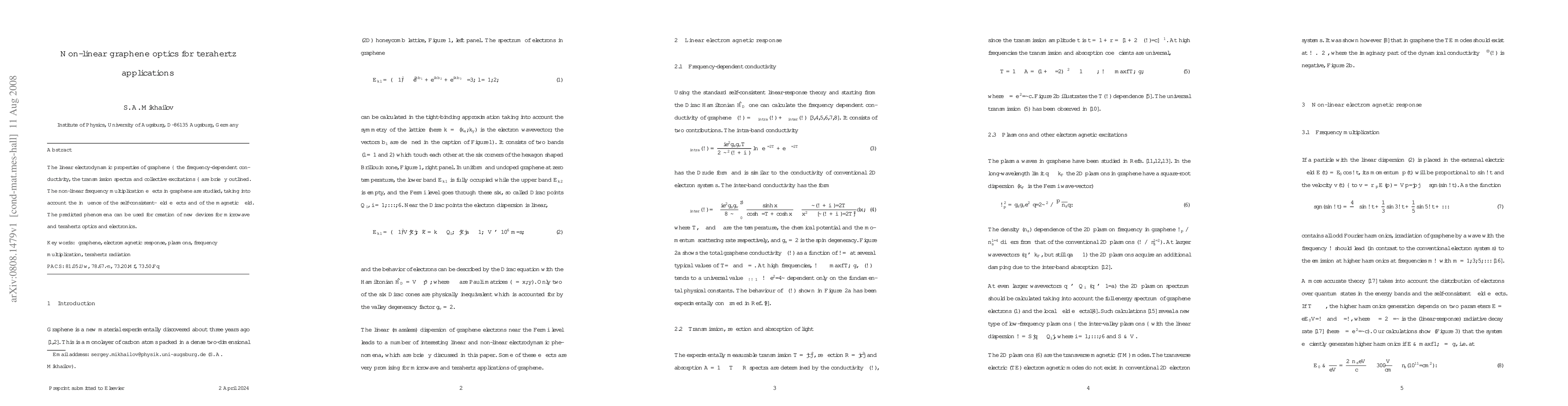 The paper presents a comprehensive analysis of non-linear frequency multiplication effects and self-consistent-field effects in graphene, providing a theoretical foundation for new device development in terahertz optics and electronics.