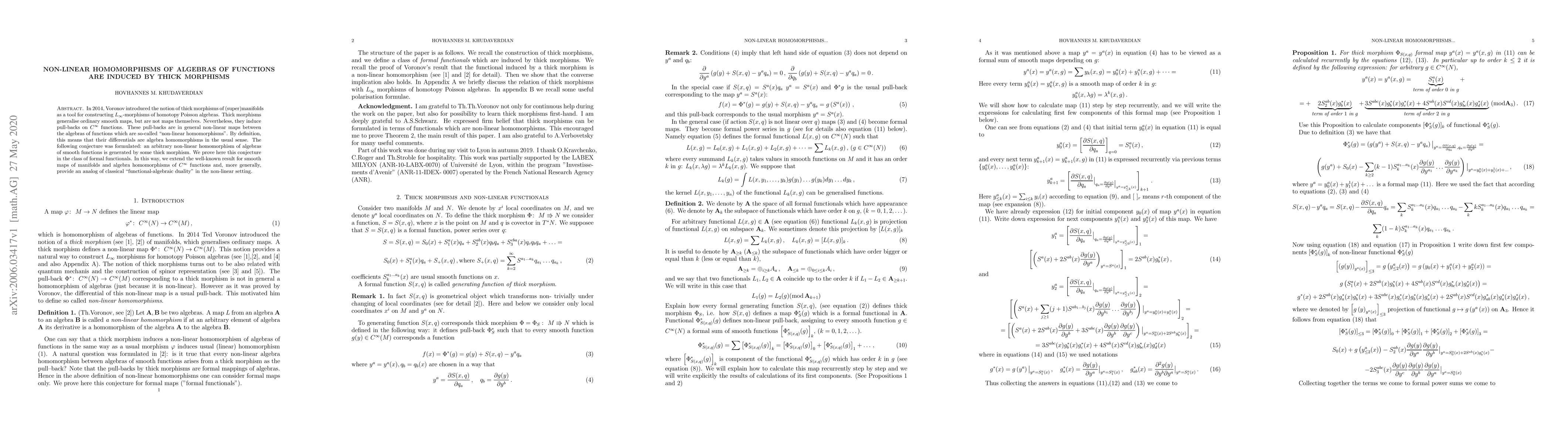The paper introduces a proof that non-linear homomorphisms of algebras of smooth functions are induced by thick morphisms, extending the classical duality to a non-linear setting.