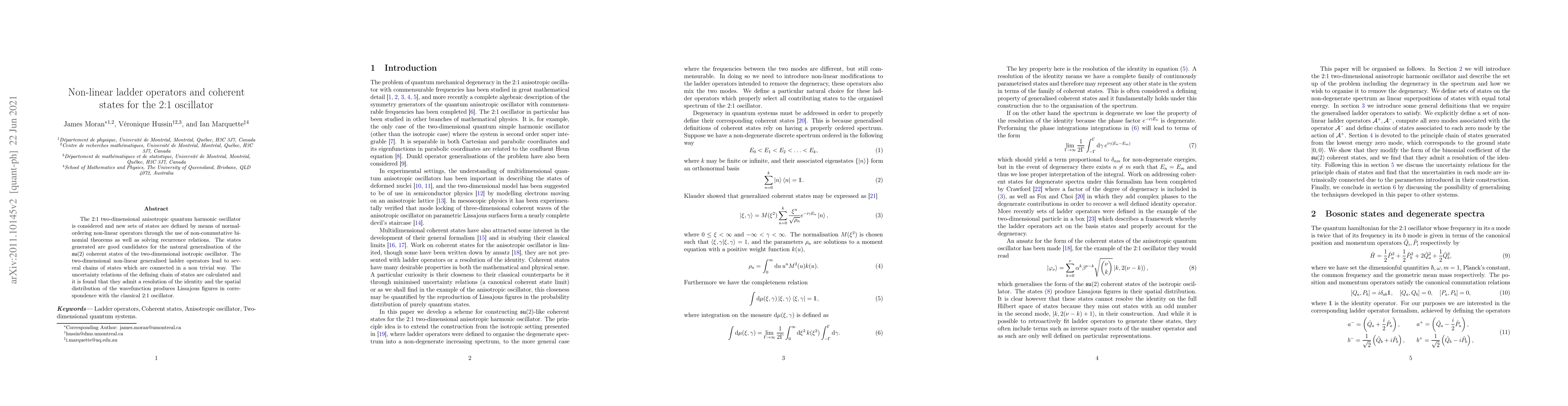 This paper introduces non-linear ladder operators for the 2:1 anisotropic quantum harmonic oscillator, defining new sets of states via normal-ordering and non-commutative binomial theorems. These states generalize $\mathfrak{su}(2)$ coherent states and exhibit Lissajous figure distributions, mirroring the classical 2:1 oscillator's behavior.