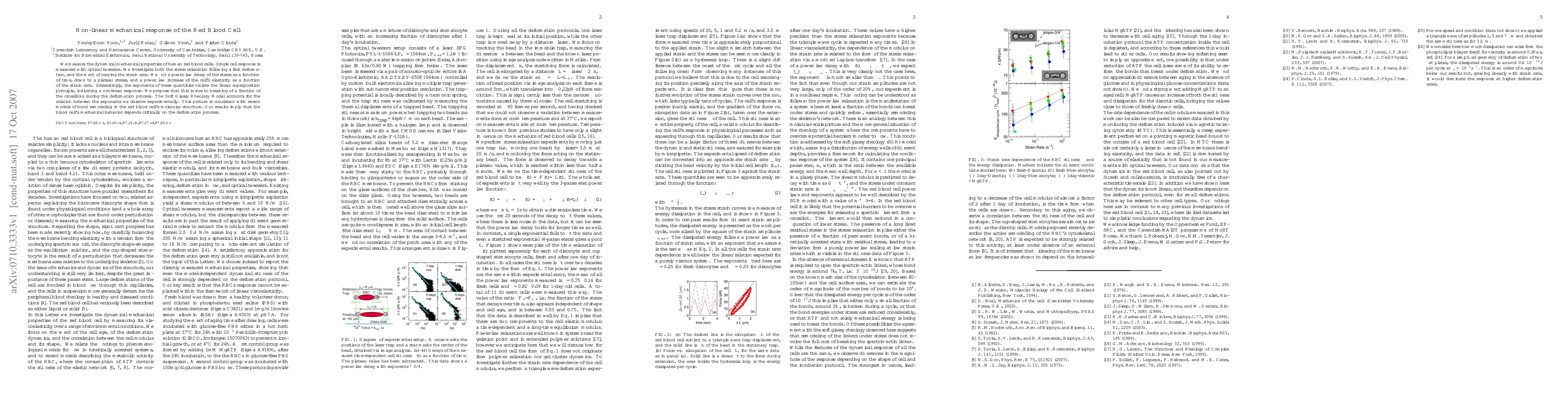 This study measures the non-linear mechanical response of red blood cells using optical tweezers, revealing a power law decay in stress relaxation and a power law increase in elasticity with strain rate, violating the linear superposition principle. The findings suggest that the cells' mechanical behavior is non-linear due to crosslink breaking during deformation, consistent with the Soft Glassy Rheology Model.