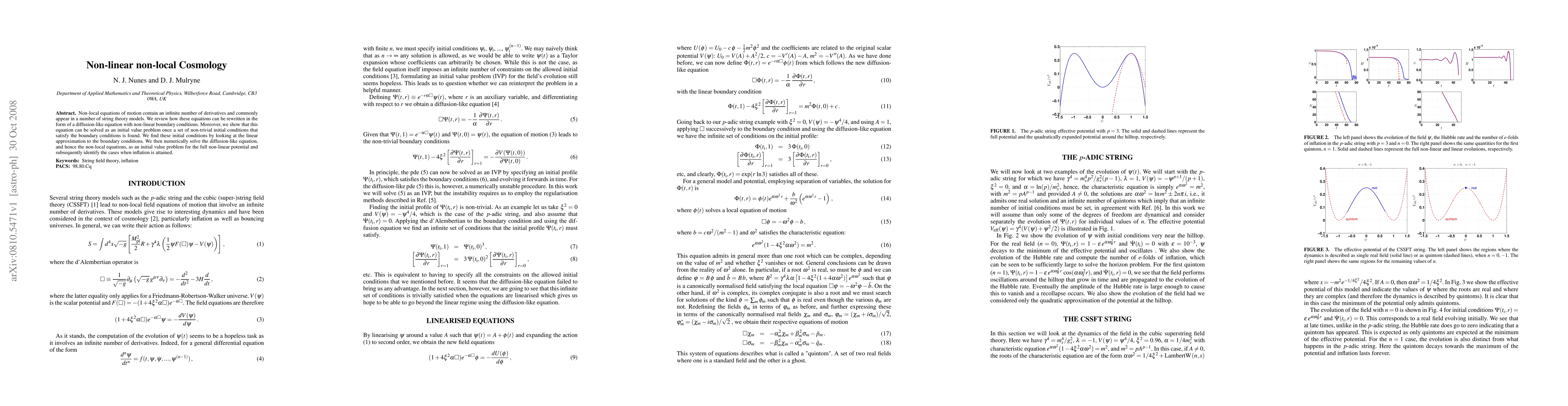 Non-local equations of motion contain an infinite number of derivatives and commonly appear in a number of string theory models. We review how these equations can be rewritten in the form of a diffusion-like equation with non-linear boundary conditions. Moreover, we show that this equation can be solved as an initial value problem once a set of non-trivial initial conditions that satisfy the boundary conditions is found. We find these initial conditions by looking at the linear approximation to the boundary conditions. We then numerically solve the diffusion-like equation, and hence the non-local equations, as an initial value problem for the full non-linear potential and subsequently identify the cases when inflation is attained.