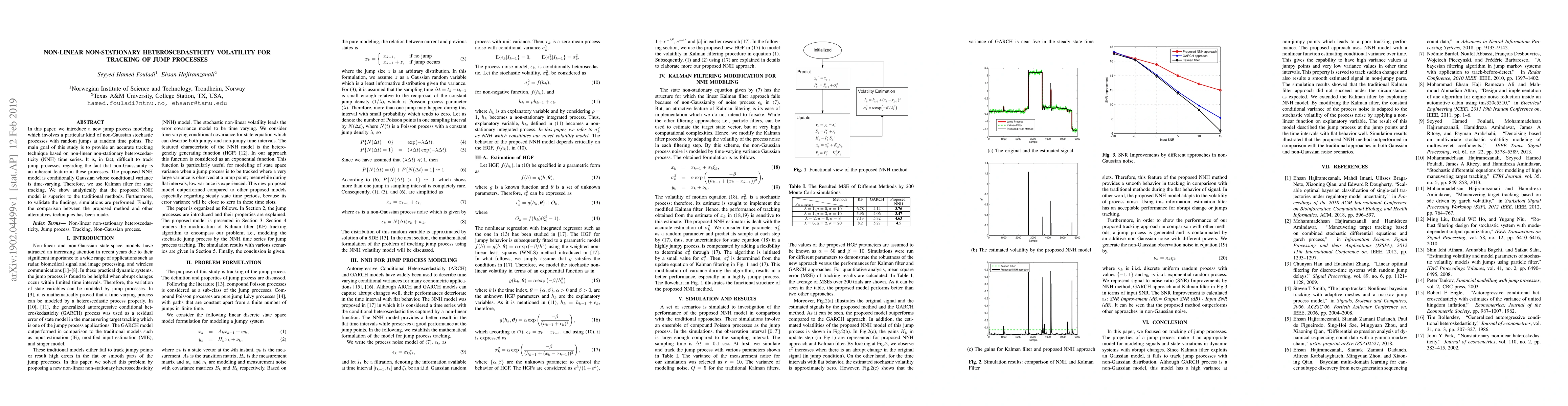 In this paper, we introduce a new jump process modeling which involves a particular kind of non-Gaussian stochastic processes with random jumps at random time points. The main goal of this study is to provide an accurate tracking technique based on non-linear non-stationary heteroscedasticity (NNH) time series. It is, in fact, difficult to track jump processes regarding the fact that non-Gaussianity is an inherent feature in these processes. The proposed NNH model is conditionally Gaussian whose conditional variance is time-varying. Therefore, we use Kalman filter for state tracking. We show analytically that the proposed NNH model is superior to the traditional methods. Furthermore, to validate the findings, simulations are performed. Finally, the comparison between the proposed method and other alternatives techniques has been made.