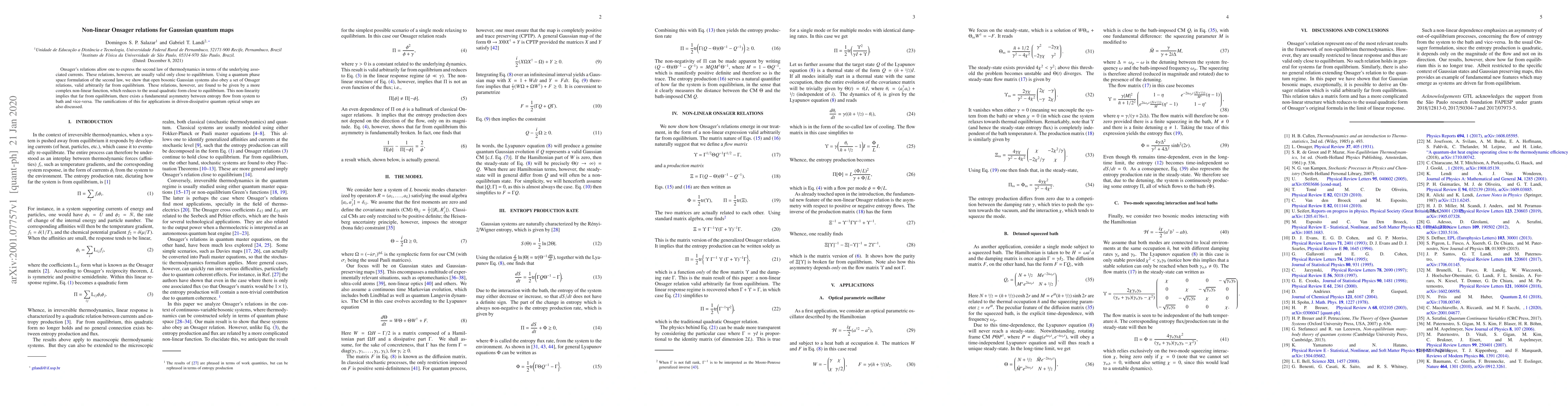This paper demonstrates that open bosonic Gaussian systems obey non-linear Onsager relations valid far from equilibrium, contrasting with the usual linear relations near equilibrium. These non-linearities reveal fundamental asymmetries in entropy flow, with implications for driven-dissipative quantum optical systems.