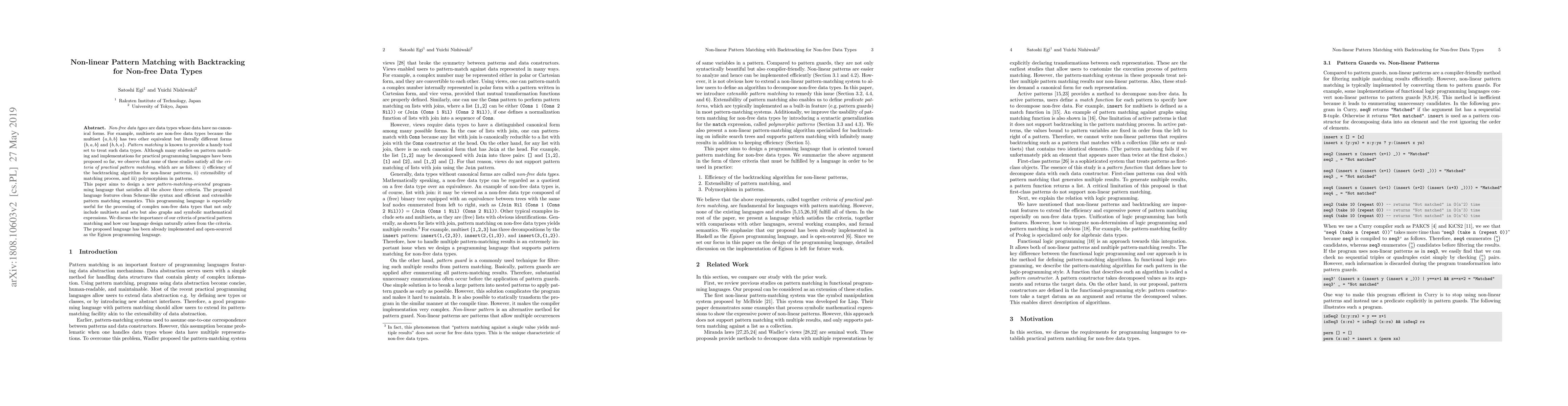 This paper introduces a new programming language designed for efficient and extensible pattern matching of non-free data types, addressing criteria such as backtracking algorithm efficiency, extensibility, and polymorphism. The Egison language, implemented and open-sourced, aims to handle complex data types like multisets, graphs, and symbolic expressions.