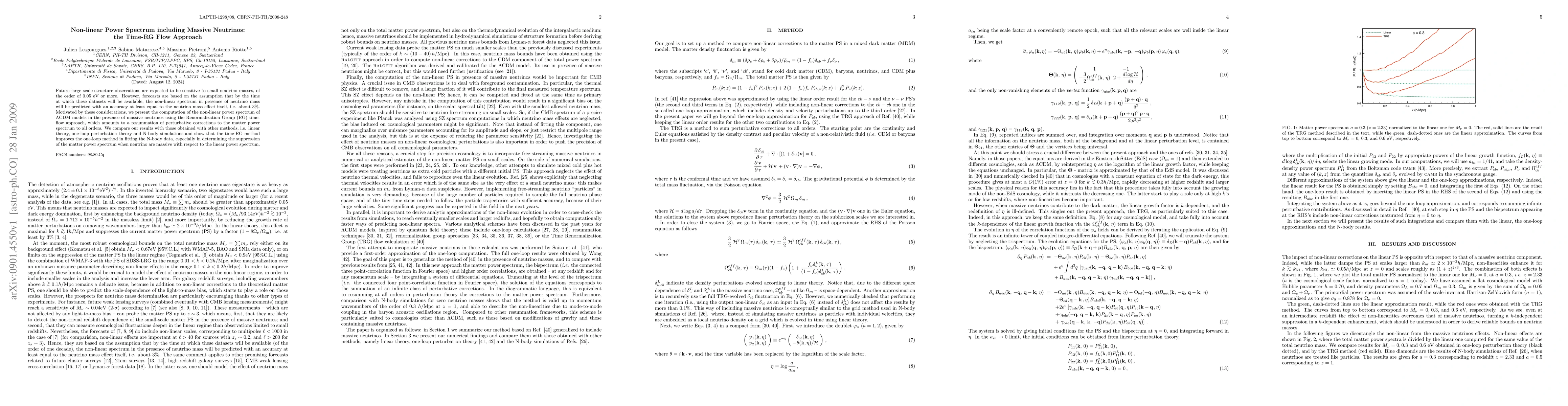 This paper computes the non-linear power spectrum for LambdaCDM models incorporating massive neutrinos using the Renormalization Group time-flow approach, demonstrating improved accuracy over one-loop perturbation theory and N-body simulations, especially in capturing the suppression effect of massive neutrinos.
