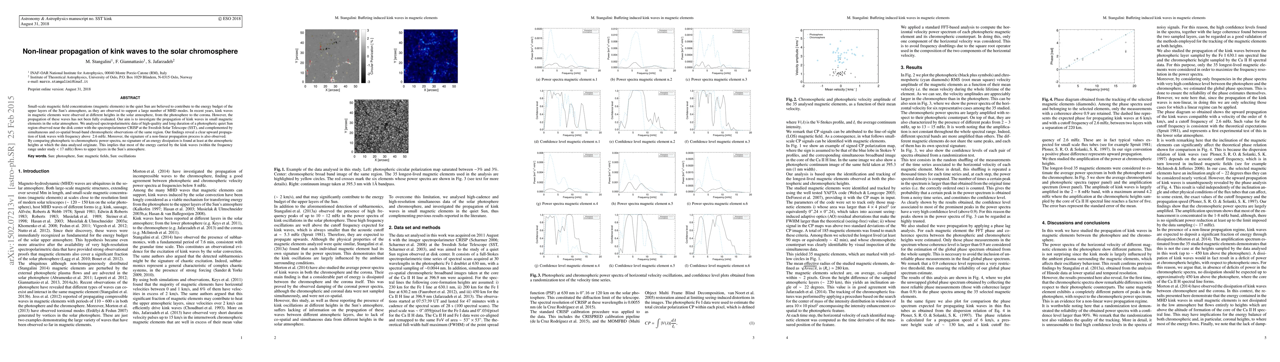 This study investigates the propagation of kink waves in small magnetic elements of the solar chromosphere, revealing their clear upward propagation with frequency above 2.6 mHz and a non-linear propagation process. No energy dissipation is observed, indicating that the energy carried by these waves flows to upper solar atmospheric layers.