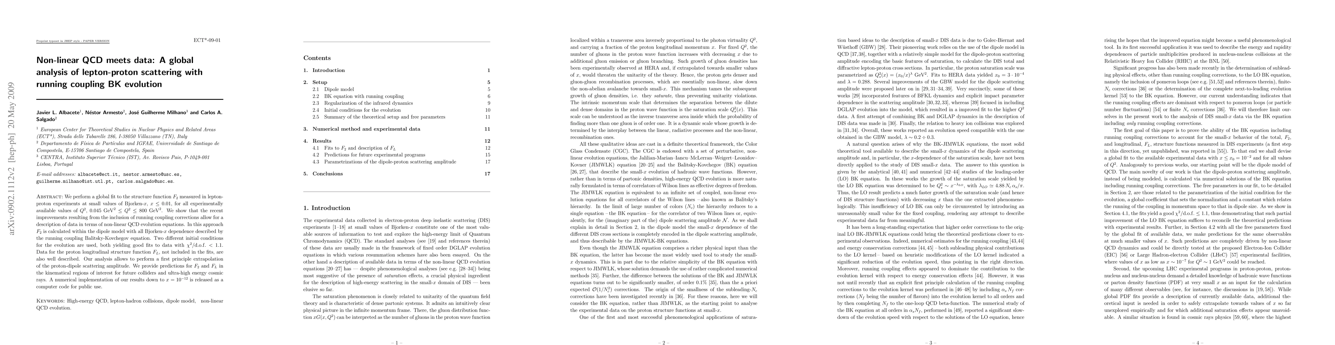 This paper presents a global analysis of lepton-proton scattering data using non-linear QCD evolution equations with running coupling corrections, showing excellent fits to F_2 and F_L structure functions. The dipole model and Balitsky-Kovchegov equation provide predictions for future colliders and cosmic rays.