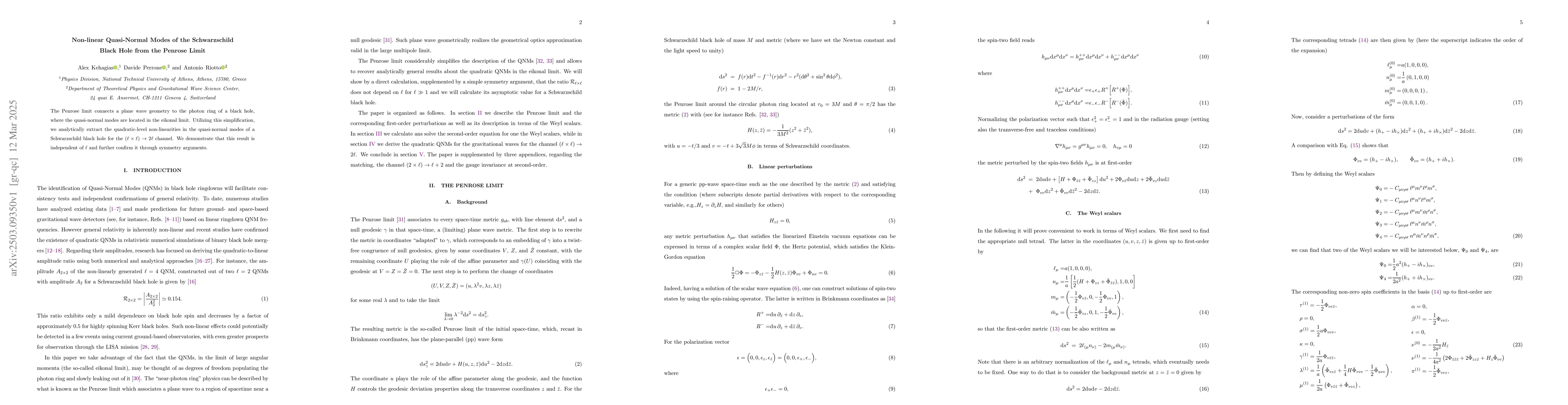 The research analytically extracts quadratic-level non-linearities in the quasi-normal modes of a Schwarzschild black hole using the Penrose limit, connecting plane wave geometry to the black hole's photon ring.