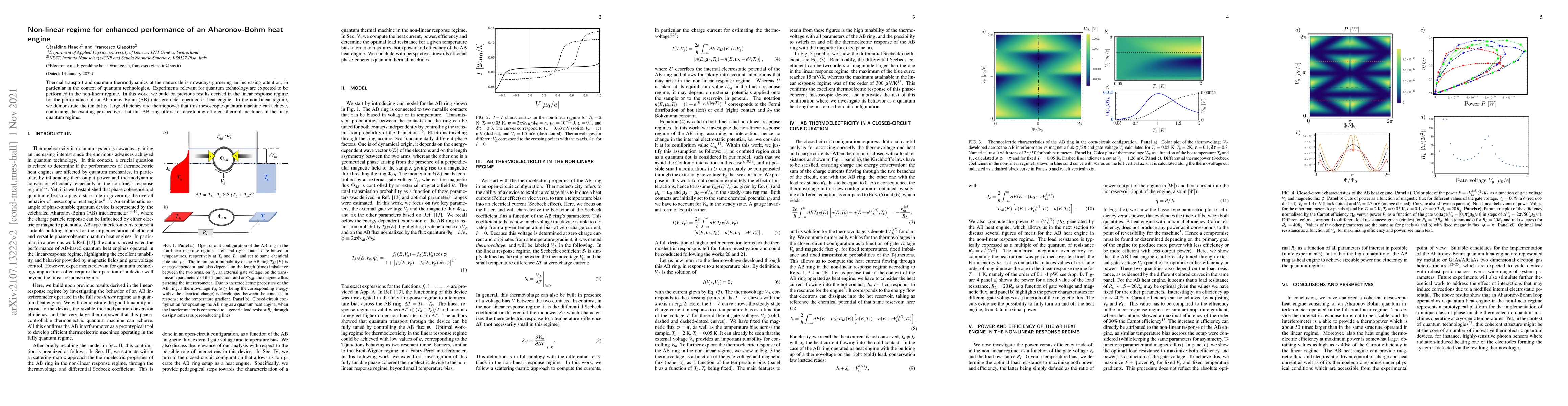 This paper investigates the performance of an Aharonov-Bohm interferometer in the non-linear regime, demonstrating its tunability, large efficiency, and thermopower, which highlights its potential for developing efficient nanoscale thermal machines.