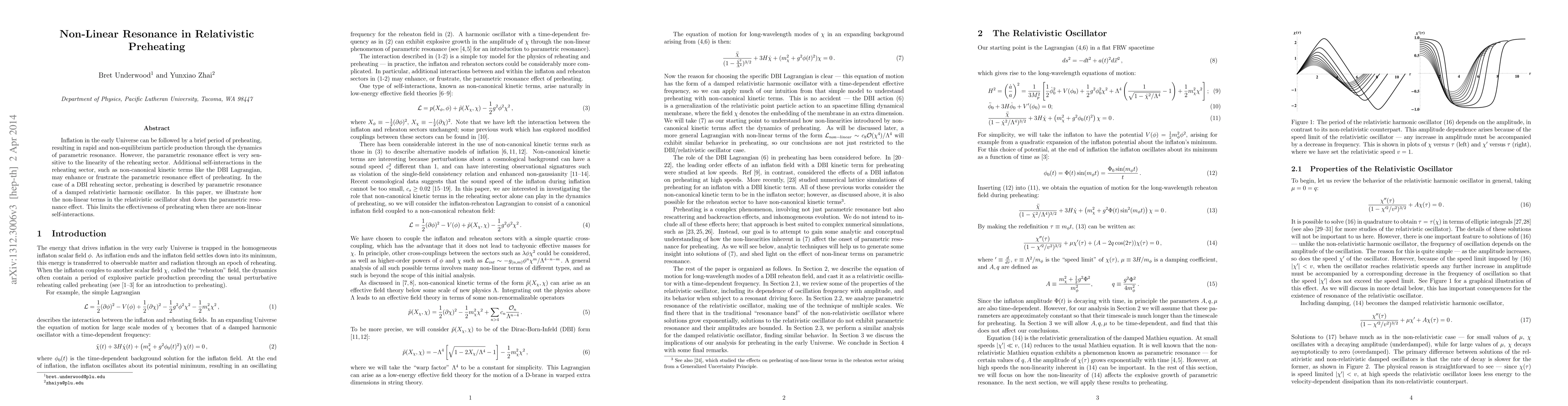Inflation in the early Universe can be followed by a brief period of preheating, resulting in rapid and non-equilibrium particle production through the dynamics of parametric resonance. However, the parametric resonance effect is very sensitive to the linearity of the reheating sector. Additional self-interactions in the reheating sector, such as non-canonical kinetic terms like the DBI Lagrangian, may enhance or frustrate the parametric resonance effect of preheating. In the case of a DBI reheating sector, preheating is described by parametric resonance of a damped relativistic harmonic oscillator. In this paper, we illustrate how the non-linear terms in the relativistic oscillator shut down the parametric resonance effect. This limits the effectiveness of preheating when there are non-linear self-interactions.