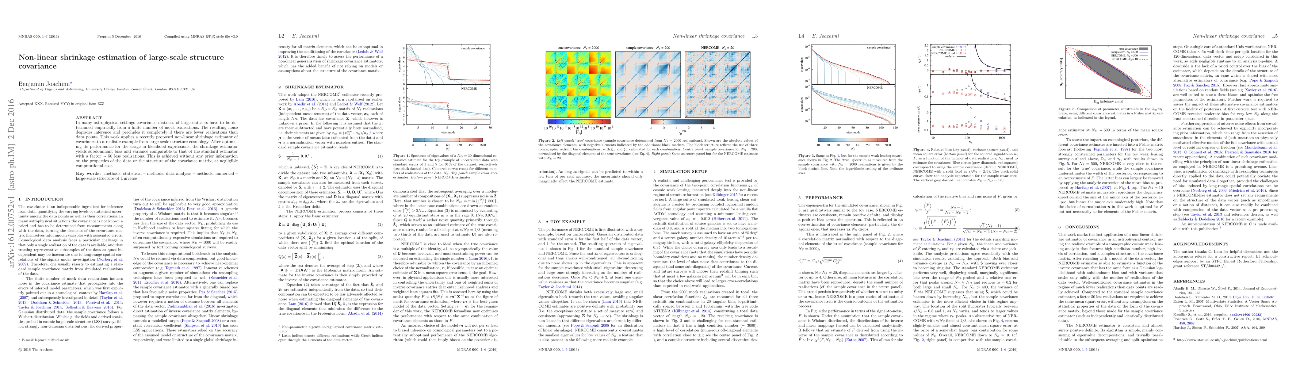This paper proposes a non-linear shrinkage estimator to improve the estimation of covariance matrices in large-scale astrophysical datasets, achieving comparable variance and subdominant bias with significantly fewer mock realizations compared to standard methods, without prior information or high computational costs.