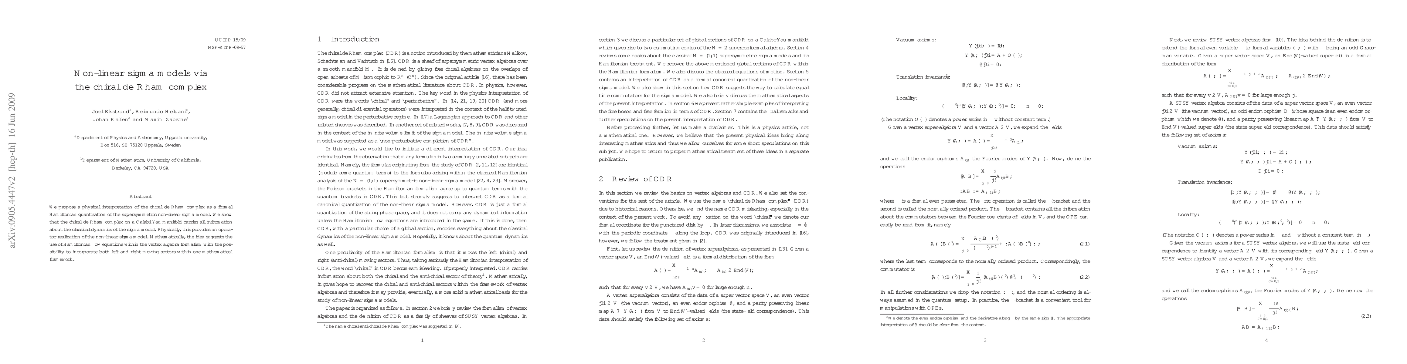 We propose a physical interpretation of the chiral de Rham complex as a formal Hamiltonian quantization of the supersymmetric non-linear sigma model. We show that the chiral de Rham complex on a Calabi-Yau manifold carries all information about the classical dynamics of the sigma model. Physically, this provides an operator realization of the non-linear sigma model. Mathematically, the idea suggests the use of Hamiltonian flow equations within the vertex algebra formalism with the possibility to incorporate both left and right moving sectors within one mathematical framework.
