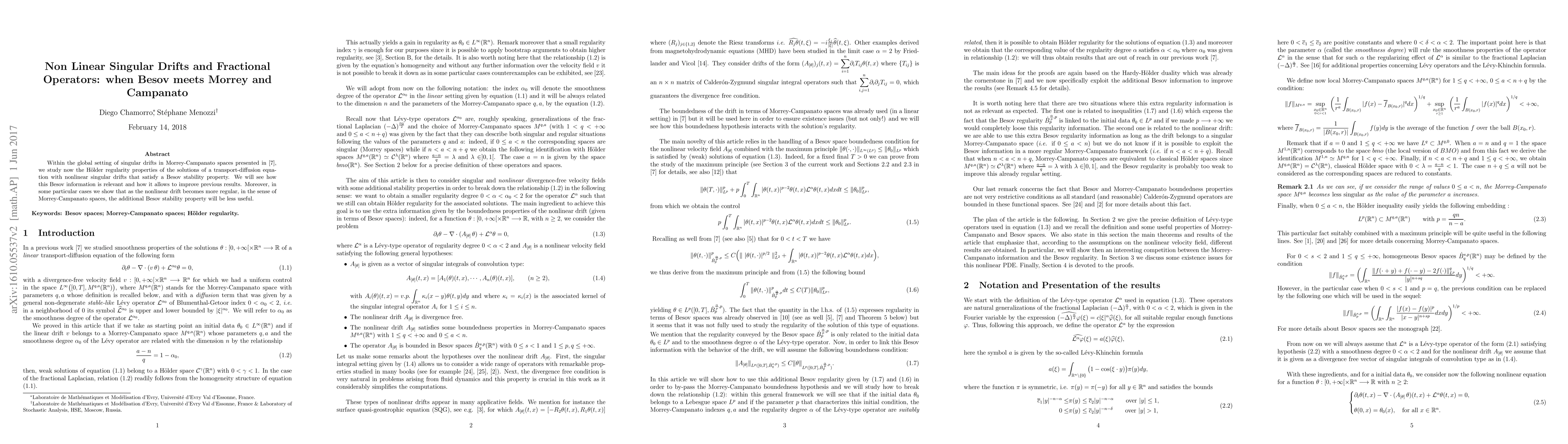 This paper investigates the Hölder regularity of solutions to a transport-diffusion equation with nonlinear singular drifts in Morrey-Campanato spaces, leveraging Besov stability properties to enhance previous results. It also demonstrates that Besov stability becomes less useful as the drift's regularity in Morrey-Campanato spaces increases.