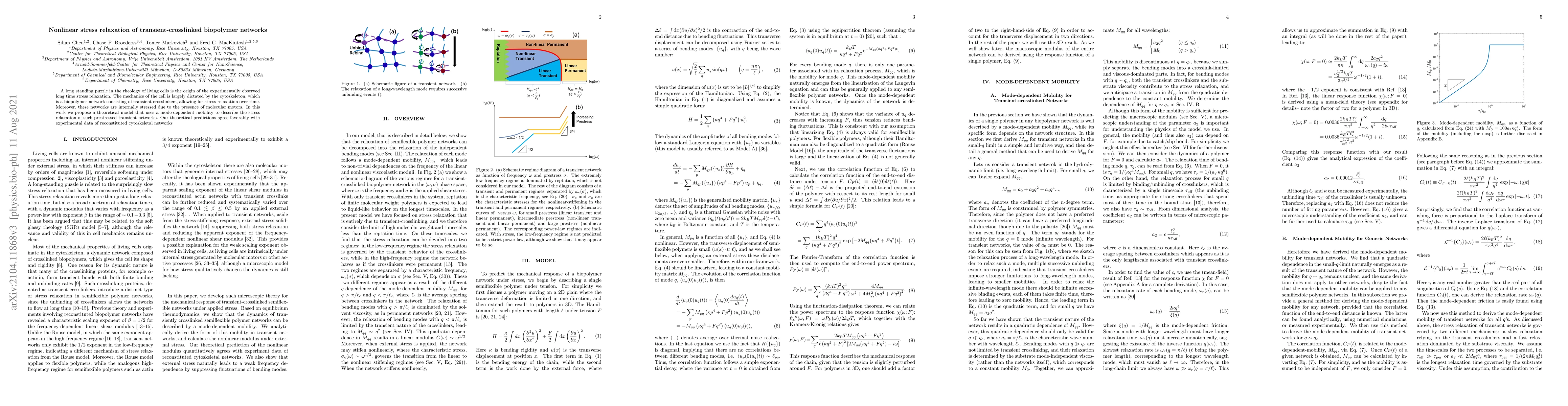 This paper proposes a theoretical model for the non-linear stress relaxation in transient-crosslinked biopolymer networks, specifically focusing on cytoskeletal networks in living cells. The model uses mode-dependent mobility to describe the relaxation process and aligns well with experimental data, potentially explaining the long-time stress relaxation observed in cells.