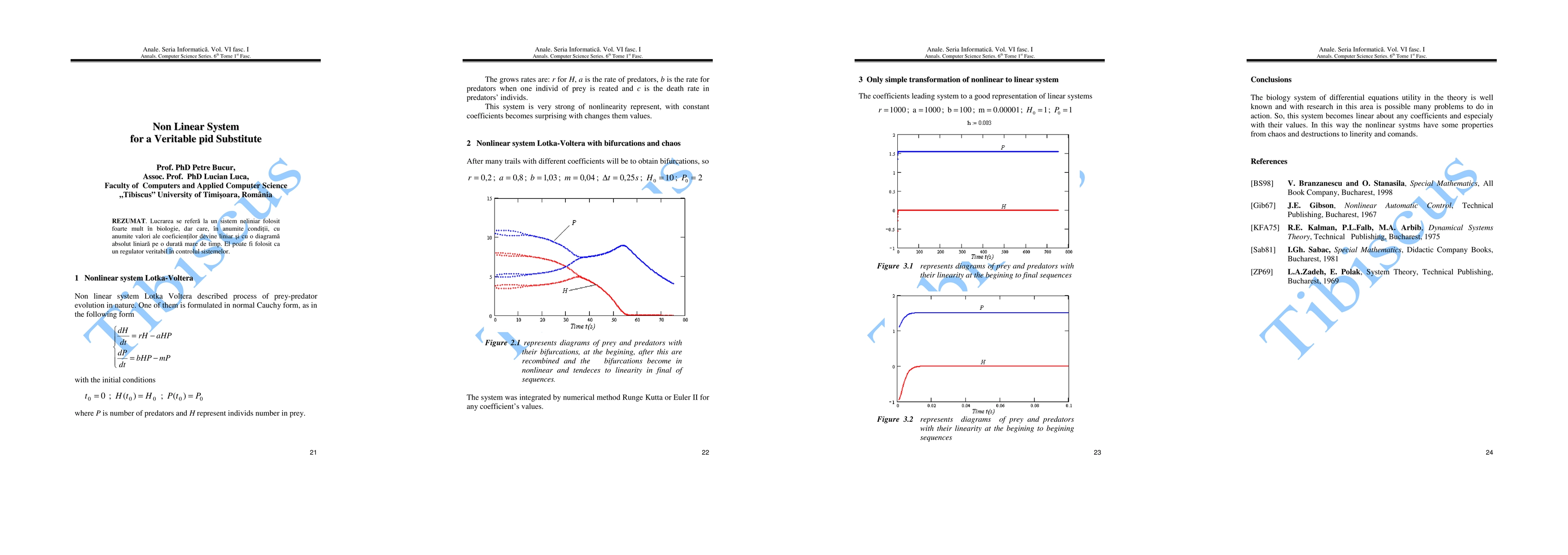 The paper deals with a non-linear system largely used in biology, which, in certain conditions and for particular coefficient values, becomes linear, with a linear diagram over a large range of time. It can be used as a veritable regulator in systems' control