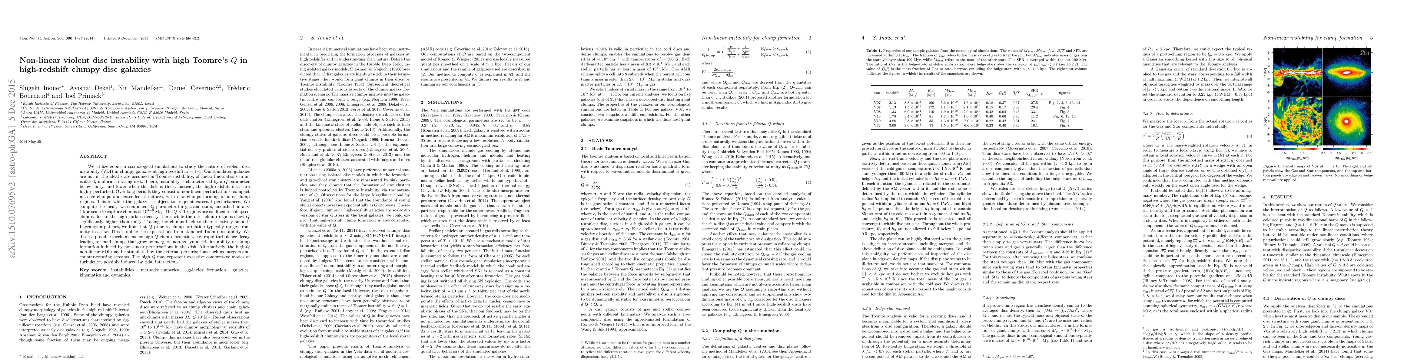 This paper investigates violent disc instability in high-redshift, clumpy galaxies using cosmological simulations, revealing non-linear perturbations and frequent external influences. Contrary to standard Toomre instability, high Toomre's Q values are found in inter-clump regions, suggesting mechanisms like turbulence decay, non-axisymmetric instability, or external perturbations drive clump formation.