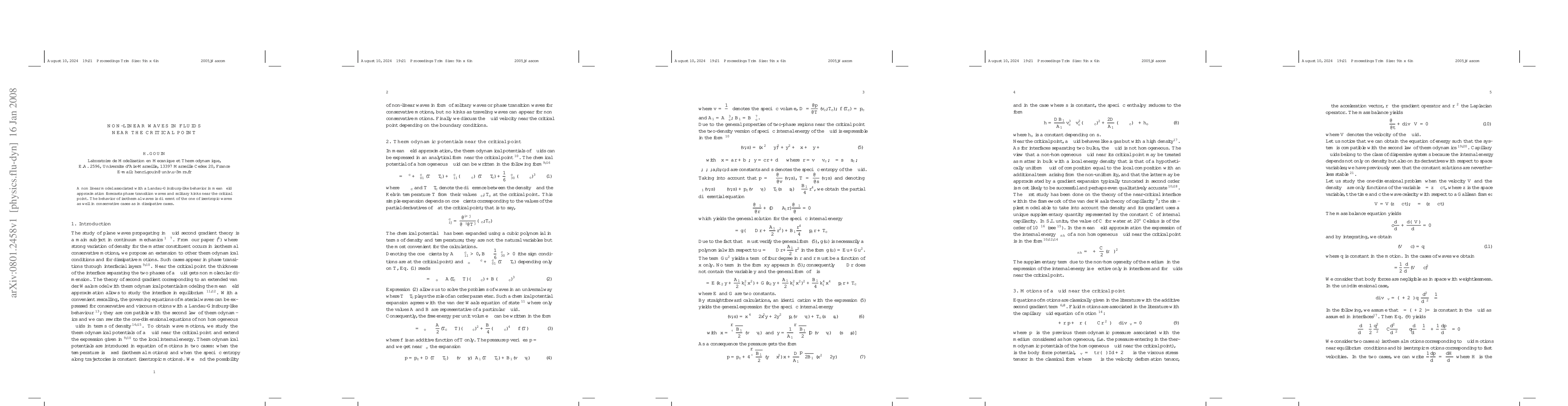 The work introduces a novel approach to studying non-linear waves in fluids near critical points by differentiating between isothermal and isentropic wave behaviors, and by demonstrating the absence of solitary waves in viscous capillary fluids.