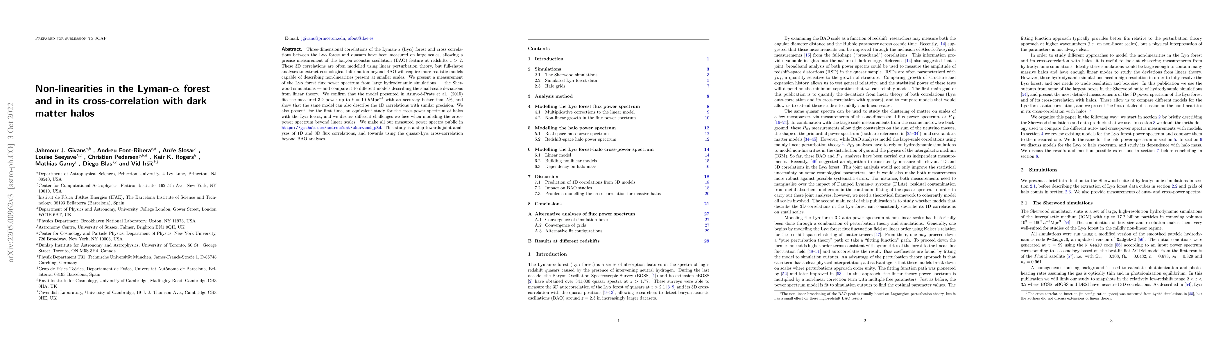 This paper measures the non-linearities in the Lyman-$\alpha$ forest and its cross-correlation with dark matter halos using large-scale hydrodynamic simulations. The study confirms that a specific model fits the measured 3D power spectrum up to $k=10\, h\rm{Mpc^{-1}}$ with high accuracy, enabling more precise cosmological analyses beyond the baryon acoustic oscillation feature.