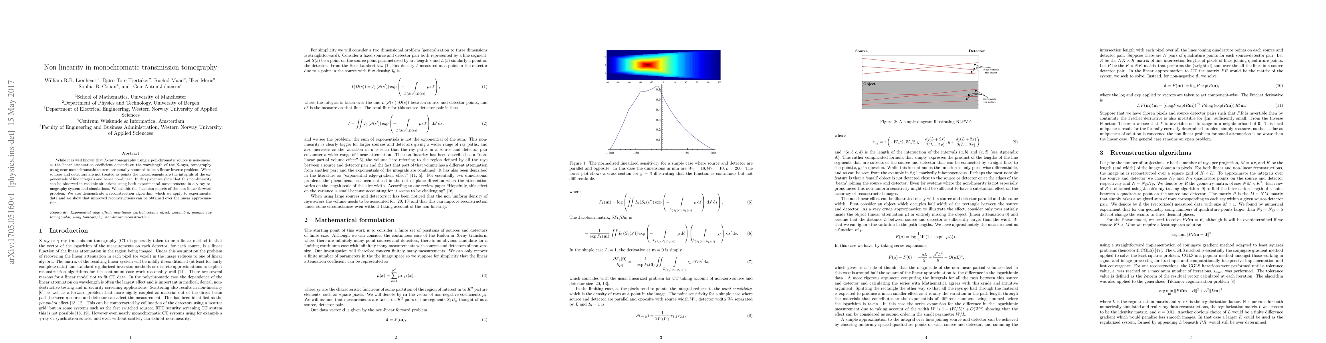 This paper demonstrates that monochromatic transmission tomography, despite being typically treated as a linear problem, exhibits non-linear characteristics due to finite source and detector sizes. Experimental and simulation results show improved reconstructions using a non-linear reconstruction algorithm over linear approximations.