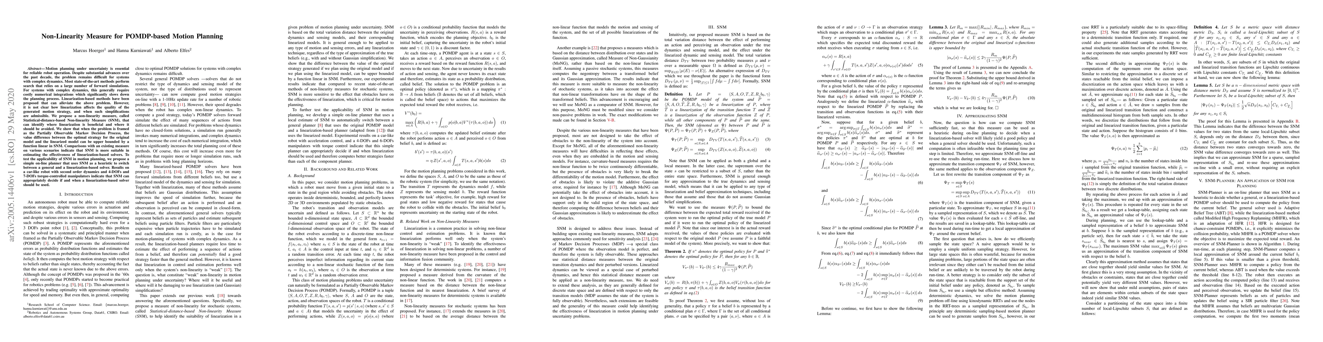 Motion planning under uncertainty is essential for reliable robot operation. Despite substantial advances over the past decade, the problem remains difficult for systems with complex dynamics. Most state-of-the-art methods perform search that relies on a large number of forward simulations. For systems with complex dynamics, this generally require costly numerical integrations which significantly slows down the planning process. Linearization-based methods have been proposed that can alleviate the above problem. However, it is not clear how linearization affects the quality of the generated motion strategy, and when such simplifications are admissible. We propose a non-linearity measure, called Statistical-distance-based Non-linearity Measure (SNM), that can identify where linearization is beneficial and where it should be avoided. We show that when the problem is framed as the Partially Observable Markov Decision Process, the value difference between the optimal strategy for the original model and the linearized model can be upper bounded by a function linear in SNM. Comparisons with an existing measure on various scenarios indicate that SNM is more suitable in estimating the effectiveness of linearization-based solvers. To test the applicability of SNM in motion planning, we propose a simple on-line planner that uses SNM as a heuristic to switch between a general and a linearization-based solver. Results on a car-like robot with second order dynamics and 4-DOFs and 7-DOFs torque-controlled manipulators indicate that SNM can appropriately decide if and when a linearization-based solver should be used.