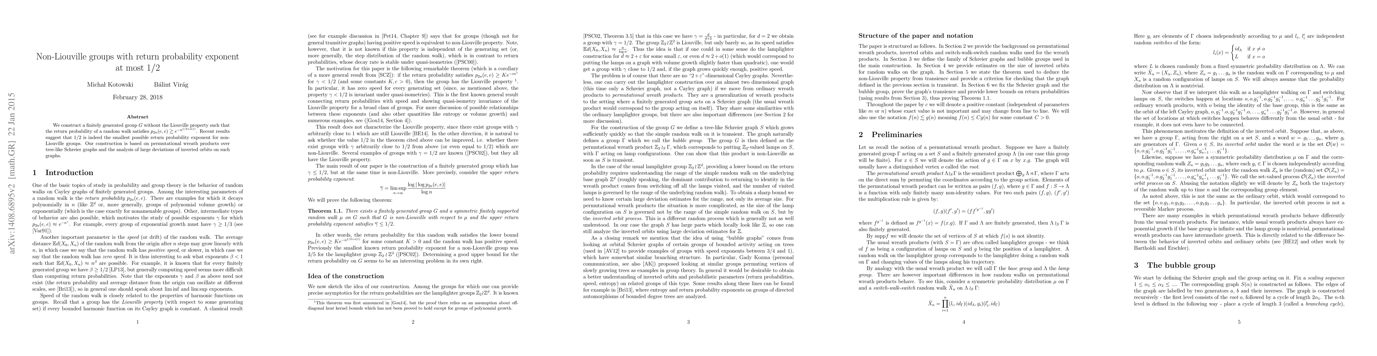 This paper constructs a finitely generated group $G$ lacking the Liouville property where the return probability of a random walk decays as $e^{-n^{1/2 + o(1)}}$, suggesting that $1/2$ is the smallest possible return probability exponent for such groups. The construction leverages permutational wreath products and large deviation analysis on tree-like Schreier graphs.