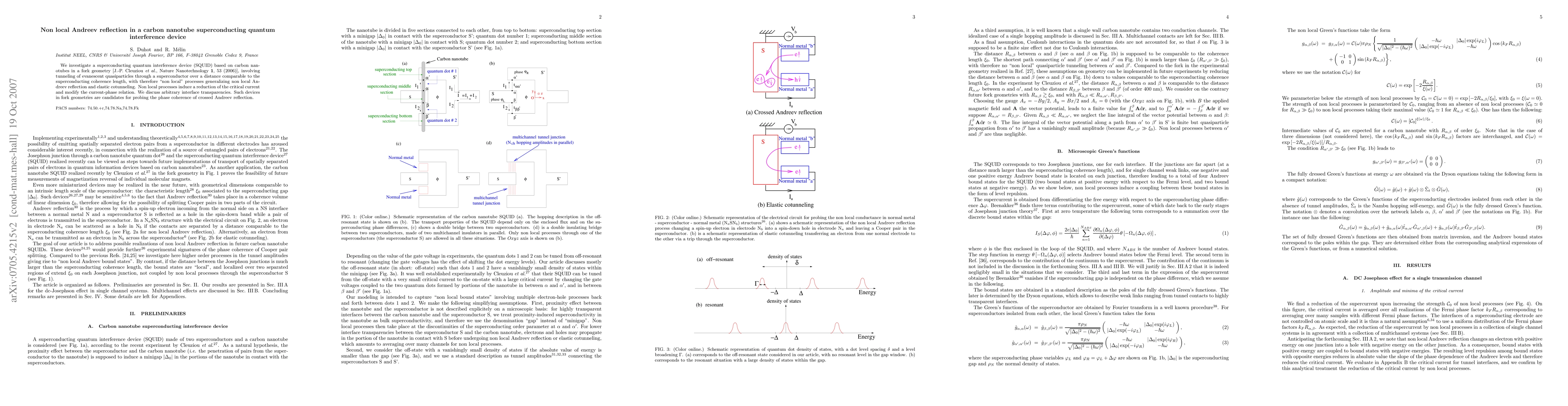 This paper explores a carbon nanotube SQUID with non-local Andreev reflection, revealing how evanescent quasiparticle tunneling affects critical current and current-phase relation. The study highlights the potential of fork-geometry devices for investigating phase coherence in crossed Andreev reflection.