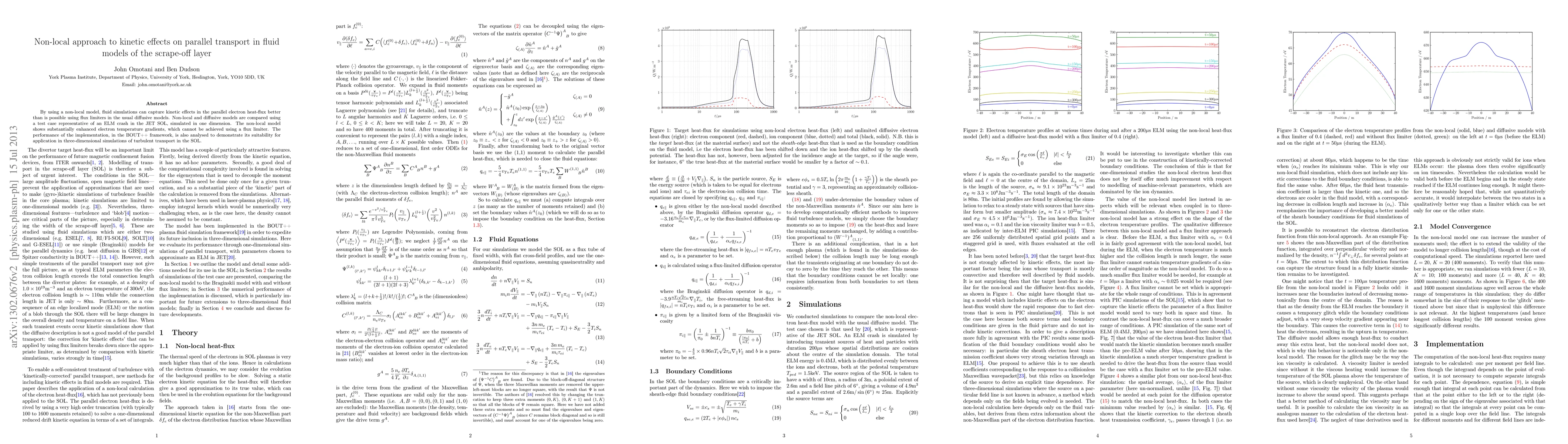 A new model captures kinetic effects in plasma simulations better than traditional methods, leading to enhanced electron temperature gradients and improved performance for 3D simulations of the scrape-off layer.