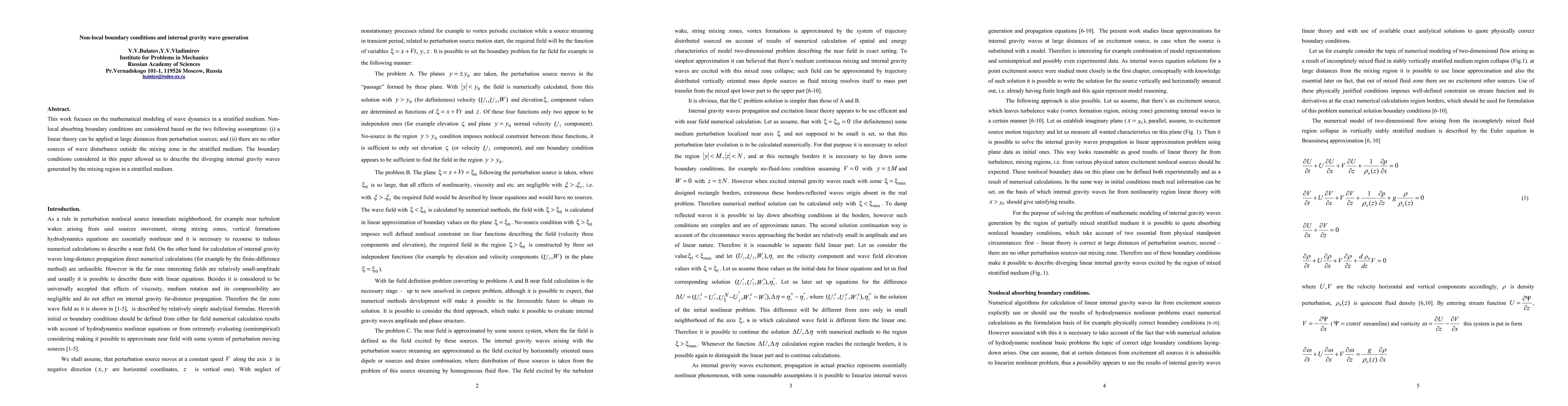 Researchers developed non-local boundary conditions to model internal gravity wave generation in a stratified medium, revealing diverging waves generated by mixing regions.