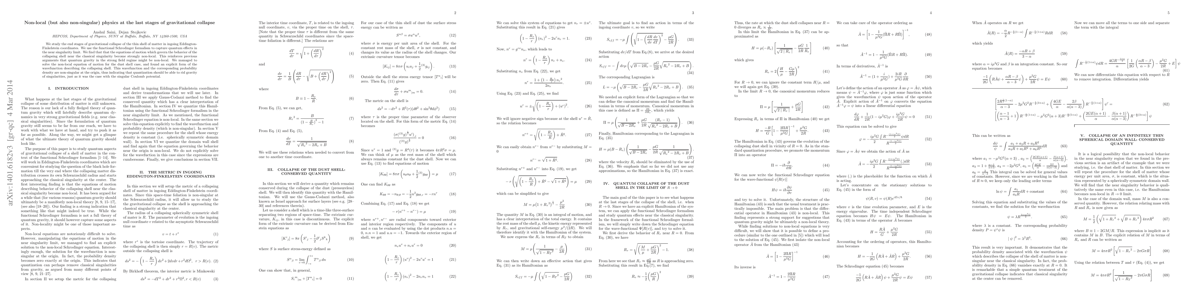 A study on gravitational collapse using quantum mechanics reveals that near a singularity, gravity becomes strongly non-local, potentially resolving singularities through quantization.