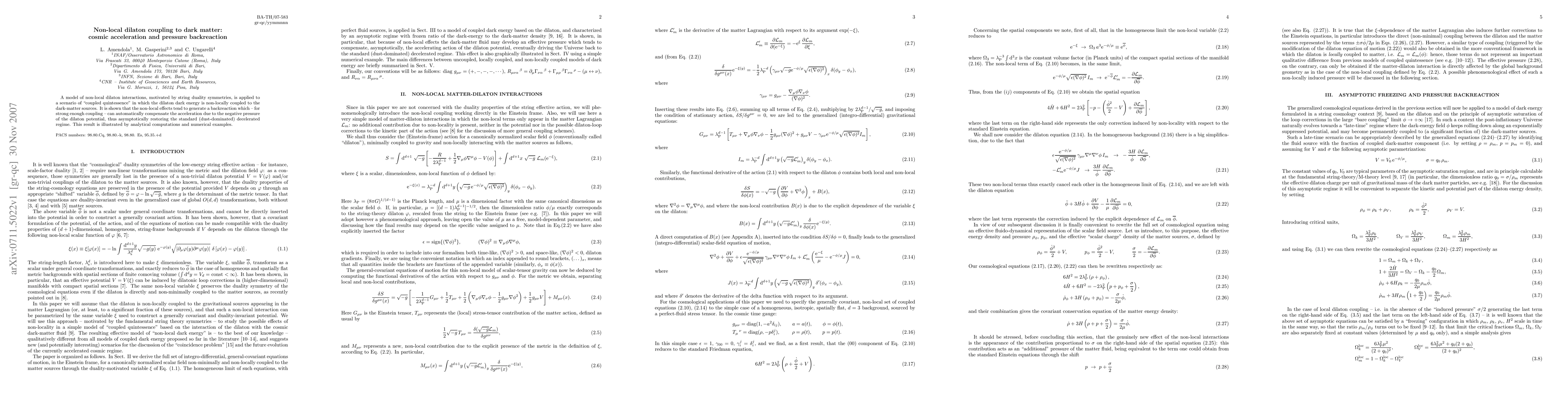 A model of non-local dilaton interactions, motivated by string duality symmetries, is applied to a scenario of "coupled quintessence" in which the dilaton dark energy is non-locally coupled to the dark-matter sources. It is shown that the non-local effects tend to generate a backreaction which -- for strong enough coupling -- can automatically compensate the acceleration due to the negative pressure of the dilaton potential, thus asymptotically restoring the standard (dust-dominated) decelerated regime. This result is illustrated by analytical computations and numerical examples.