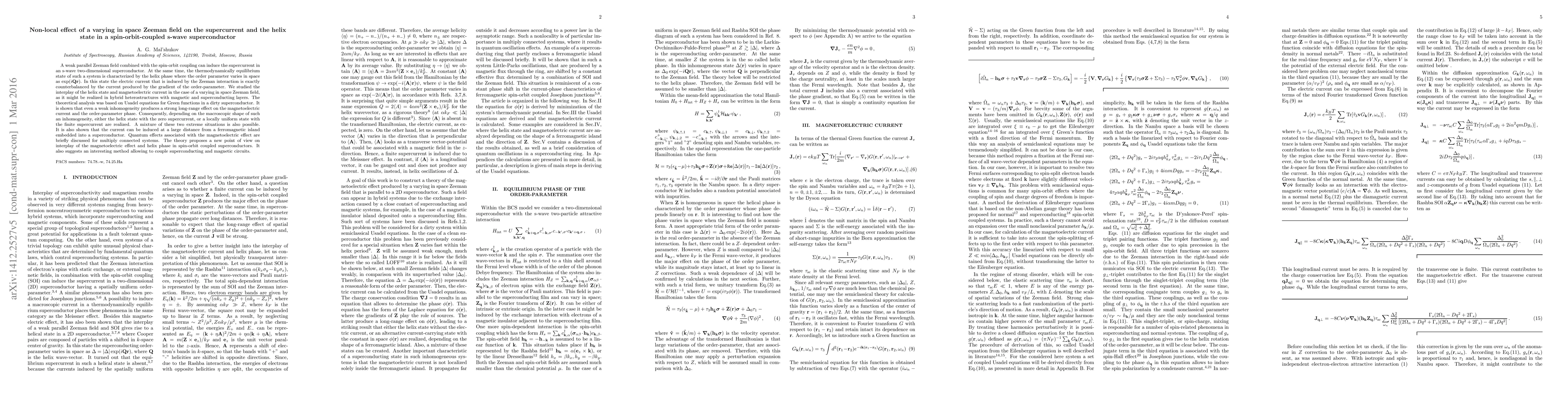 A weak parallel Zeeman field combined with the spin-orbit coupling can induce the supercurrent in an s-wave two-dimensional superconductor. At the same time, the thermodynamically equilibrium state of such a system is characterized by the helix phase where the order parameter varies in space as $\exp(i\mathbf{Qr})$. In this state the electric current that is induced by the Zeeman interaction is exactly counterbalanced by the current produced by the gradient of the order-parameter. We studied the interplay of the helix state and magnetoelectric current in the case of a varying in space Zeeman field, as it might be realized in hybrid heterostructures with magnetic and superconducting layers. The theoretical analysis was based on Usadel equations for Green functions in a dirty superconductor. It is shown that even a weak inhomogeneity produces a strong long-range effect on the magnetoelectric current and the order-parameter phase. Consequently, depending on the macroscopic shape of such an inhomogeneity, either the helix state with the zero supercurrent, or a locally uniform state with the finite supercurrent are realized. A mixture of these two extreme situations is also possible. It is also shown that the current can be induced at a large distance from a ferromagnetic island embedded into a superconductor. Quantum effects associated with the magnetoelectric effect are briefly discussed for multiply connected systems. The theory proposes a new point of view on interplay of the magnetoelectric effect and helix phase in spin-orbit coupled superconductors. It also suggests an interesting method allowing to couple superconducting and magnetic circuits.