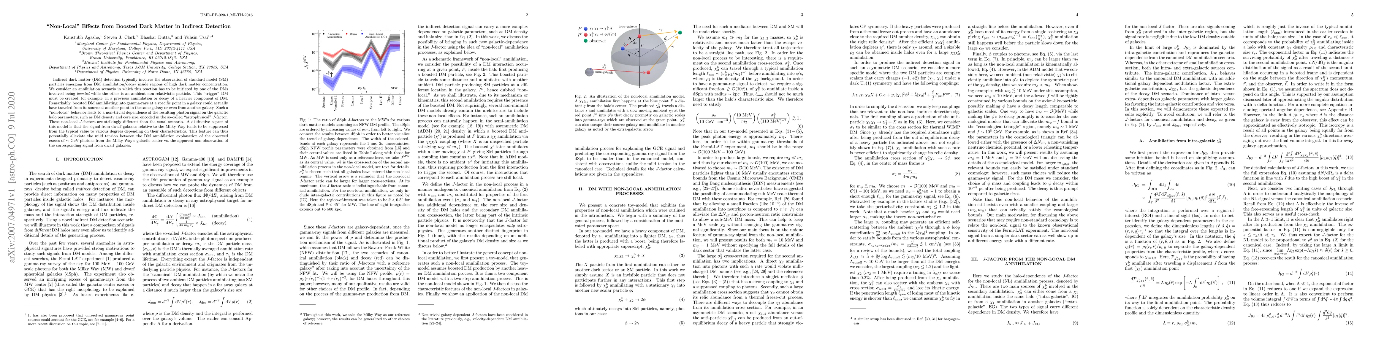 Indirect dark matter (DM) detection typically involves the observation of standard model (SM) particles emerging from DM annihilation/decay inside regions of high dark matter concentration. We consider an annihilation scenario in which this reaction has to be initiated by one of the DMs involved being boosted while the other is an ambient non-relativistic particle. This "trigger" DM must be created, for example, in a previous annihilation or decay of a heavier component of DM. Remarkably, boosted DM annihilating into gamma-rays at a specific point in a galaxy could actually have traveled from its source at another point in the same galaxy or even from another galaxy. Such a "non-local" behavior leads to a non-trivial dependence of the resulting photon signal on the galactic halo parameters, such as DM density and core size, encoded in the so-called "astrophysical" $J$-factor. These non-local $J$-factors are strikingly different than the usual scenario. A distinctive aspect of this model is that the signal from dwarf galaxies relative to the Milky Way tends to be suppressed from the typical value to various degrees depending on their characteristics. This feature can thus potentially alleviate the mild tension between the DM annihilation explanation of the observed excess of $\sim$ GeV photons from the Milky Way's galactic center vs. the apparent non-observation of the corresponding signal from dwarf galaxies.