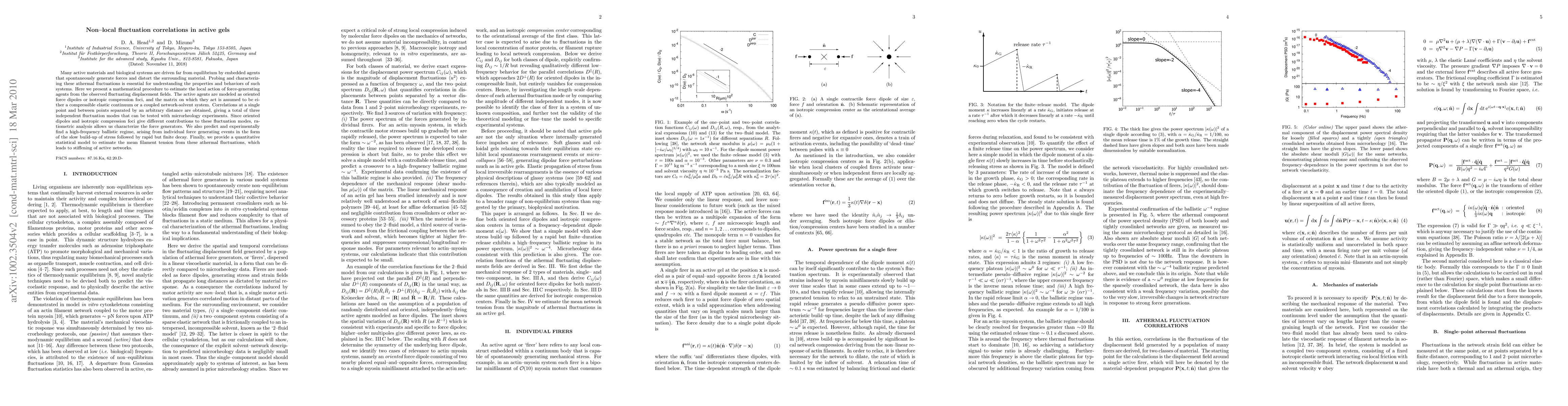 Many active materials and biological systems are driven far from equilibrium by embedded agents that spontaneously generate forces and distort the surrounding material. Probing and characterizing these athermal fluctuations is essential for understanding the properties and behaviors of such systems. Here we present a mathematical procedure to estimate the local action of force-generating agents from the observed fluctuating displacement fields. The active agents are modeled as oriented force dipoles or isotropic compression foci, and the matrix on which they act is assumed to be either a compressible elastic continuum or a coupled network-solvent system. Correlations at a single point and between points separated by an arbitrary distance are obtained, giving a total of three independent fluctuation modes that can be tested with microrheology experiments. Since oriented dipoles and isotropic compression foci give different contributions to these fluctuation modes, ratiometric analysis allows us characterize the force generators. We also predict and experimentally find a high-frequency ballistic regime, arising from individual force generating events in the form of the slow build-up of stress followed by rapid but finite decay. Finally, we provide a quantitative statistical model to estimate the mean filament tension from these athermal fluctuations, which leads to stiffening of active networks.
