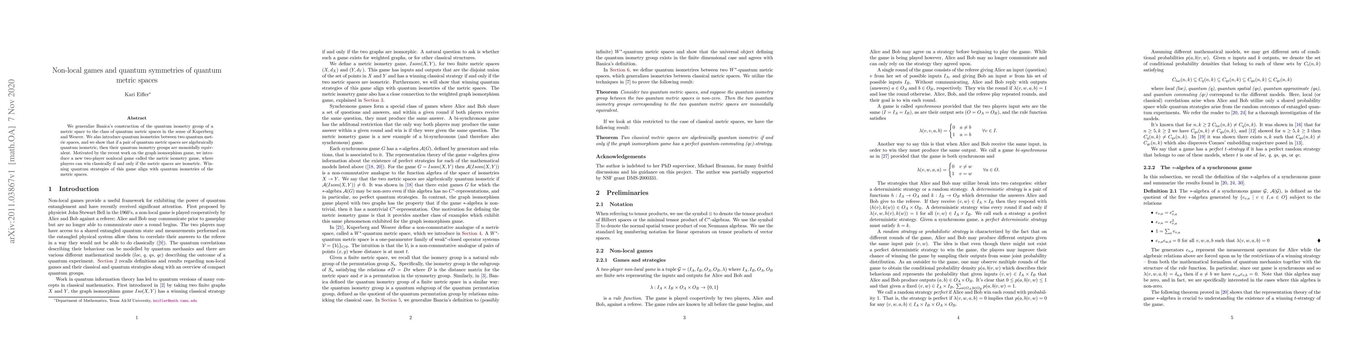 This paper generalizes Banica's quantum isometry group construction to quantum metric spaces and introduces quantum isometries between them. It demonstrates that algebraically quantum isometric spaces have monoidally equivalent quantum isometry groups and proposes a new non-local game, the metric isometry game, whose winning quantum strategies correspond to quantum isometries.