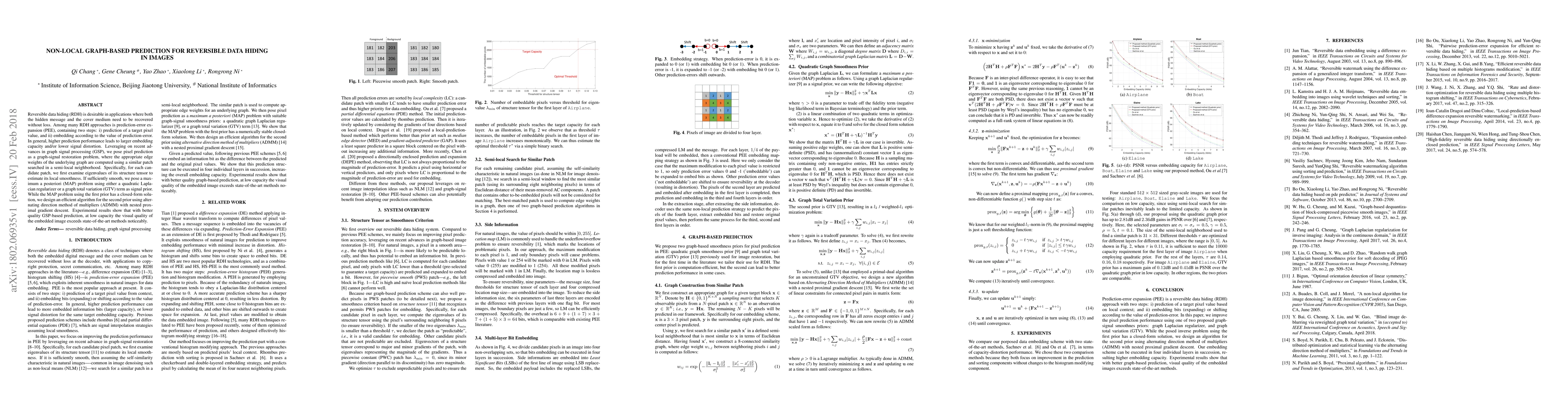 This paper proposes a non-local graph-based prediction method for reversible data hiding in images, leveraging graph signal processing to enhance prediction accuracy. The method achieves higher embedding capacity and lower distortion by estimating local smoothness and solving a maximum a posteriori problem using either a quadratic Laplacian or graph total variation prior.