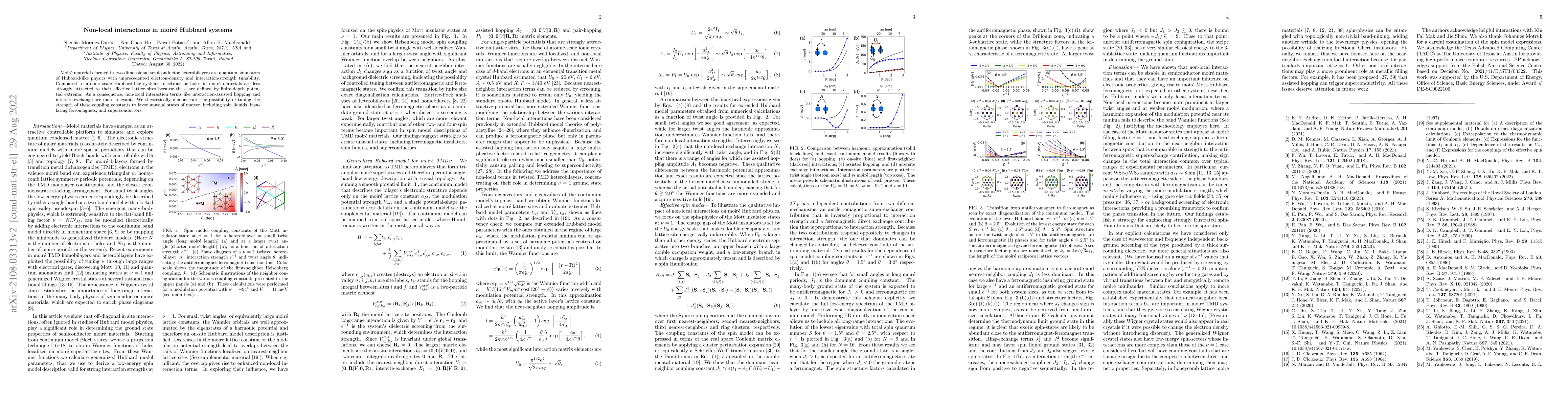 This paper explores moir\'e materials as quantum simulators of Hubbard-like physics, highlighting the relevance of non-local interactions due to reduced electron-lattice coupling. The authors theoretically demonstrate the tunability of these interactions to induce various exotic states of matter, including spin liquids, insulating ferromagnets, and superconductors.