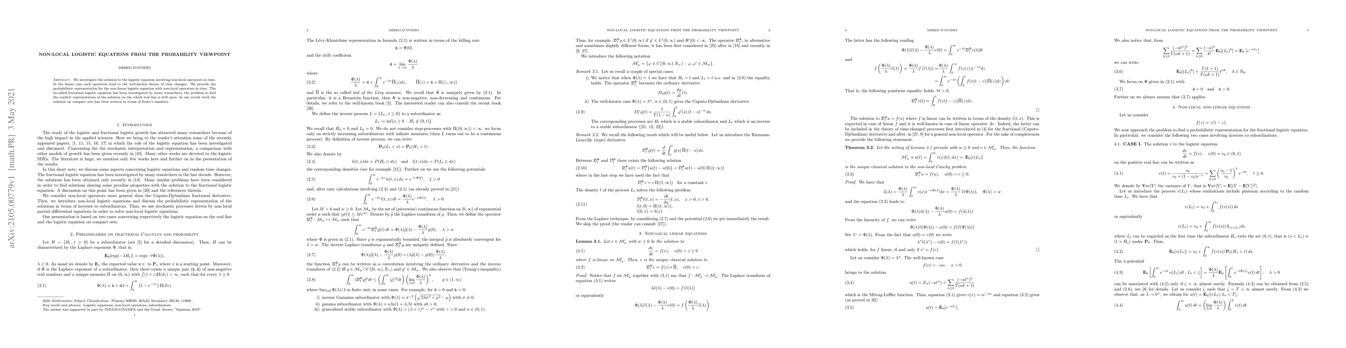 We investigate the solution to the logistic equation involving non-local operators in time. In the linear case such operators lead to the well-known theory of time changes. We provide the probabilistic representation for the non-linear logistic equation with non-local operators in time. The so-called fractional logistic equation has been investigated by many researchers, the problem to find the explicit representation of the solution on the whole real line is still open. In our recent work the solution on compact sets has been written in terms of Euler's numbers.