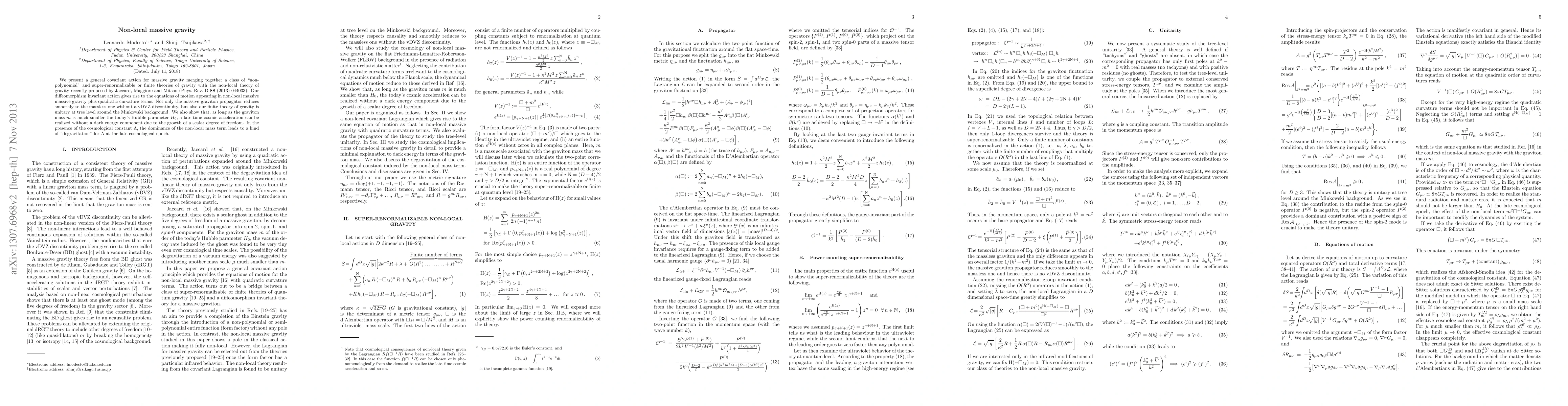 This paper presents a covariant action for non-local massive gravity that merges non-polynomial theories with a recent non-local gravity proposal, resulting in equations of motion that avoid the vDVZ discontinuity and maintain unitarity. It also demonstrates late-time cosmic acceleration without dark energy due to a scalar degree of freedom.