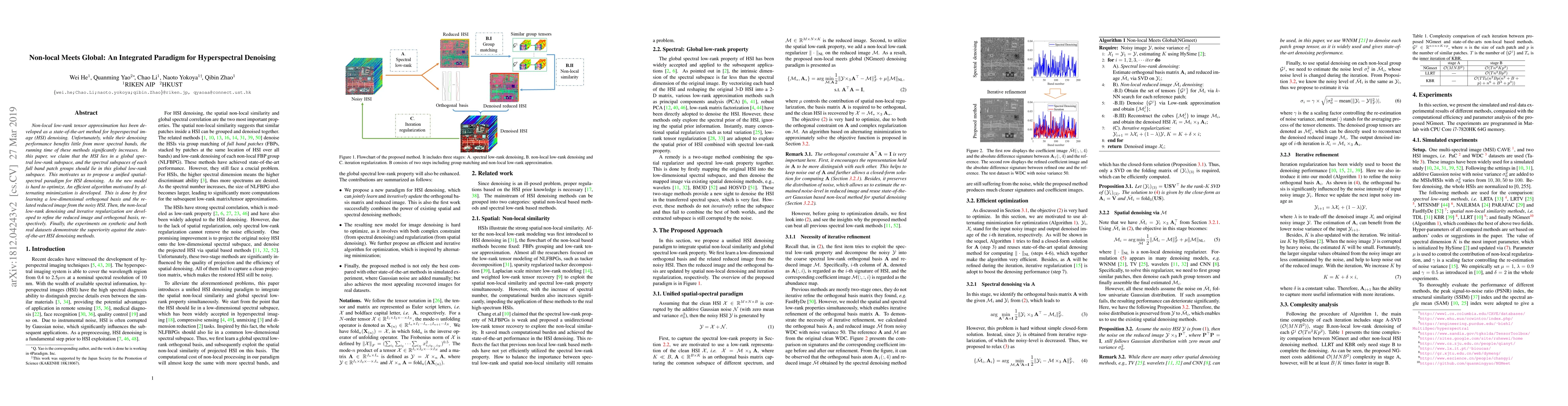 This paper proposes a unified spatial-spectral paradigm for hyperspectral image denoising, leveraging a global low-rank subspace assumption. An efficient optimization algorithm is developed to refine the reduced image and projection, demonstrating superior performance over other state-of-the-art methods.