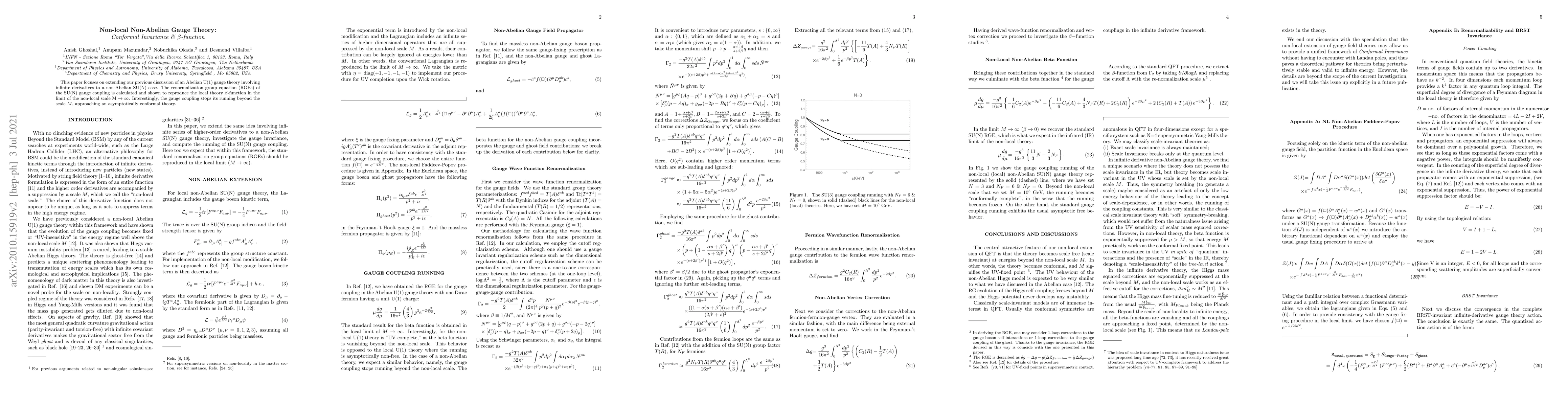 This paper focuses on extending our previous discussion of an Abelian U(1) gauge theory involving infinite derivatives to a non-Abelian SU(N) case. The renormalization group equation (RGEs) of the SU(N) gauge coupling is calculated and shown to reproduce the local theory $\beta$-function in the limit of the non-local scale M $\rightarrow \infty$. Interestingly, the gauge coupling stops its running beyond the scale $M$, approaching an asymptotically conformal theory.