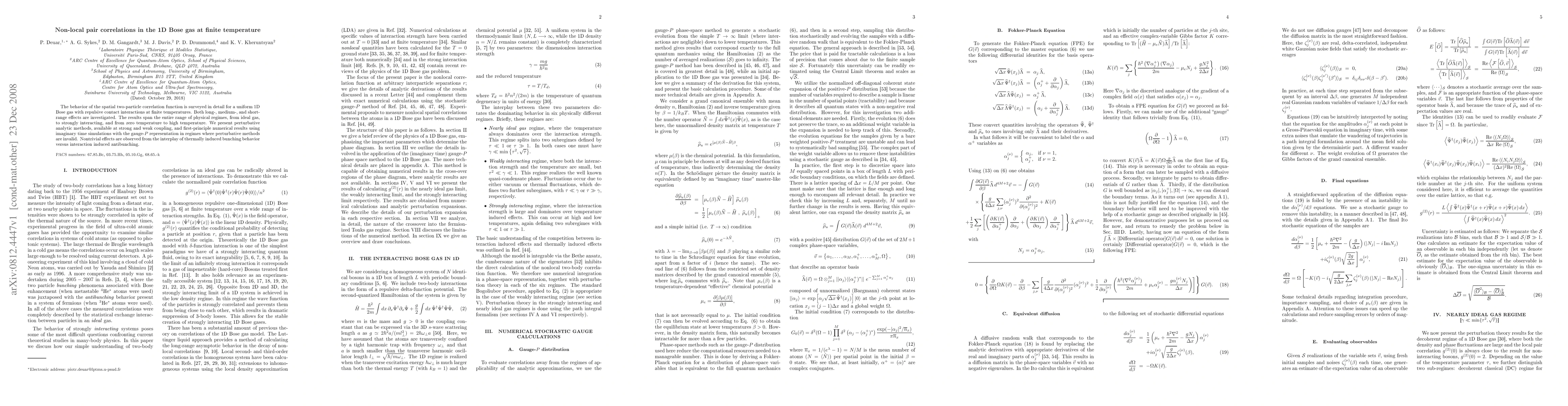 The behavior of the spatial two-particle correlation function is surveyed in detail for a uniform 1D Bose gas with repulsive contact interactions at finite temperatures. Both long-, medium-, and short-range effects are investigated. The results span the entire range of physical regimes, from ideal gas, to strongly interacting, and from zero temperature to high temperature. We present perturbative analytic methods, available at strong and weak coupling, and first-principle numerical results using imaginary time simulations with the gauge-P representation in regimes where perturbative methods are invalid. Nontrivial effects are observed from the interplay of thermally induced bunching behavior versus interaction induced antibunching.