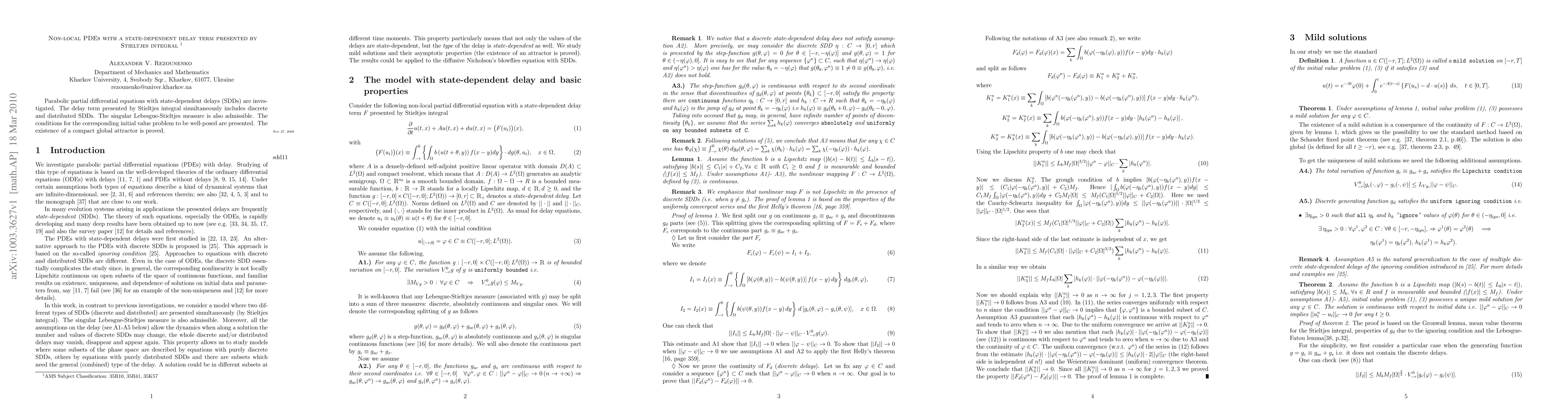 This paper investigates parabolic partial differential equations with state-dependent delays, represented by a Stieltjes integral that includes both discrete and distributed delays. It proves the well-posedness of the initial value problem and establishes the existence of a compact global attractor.