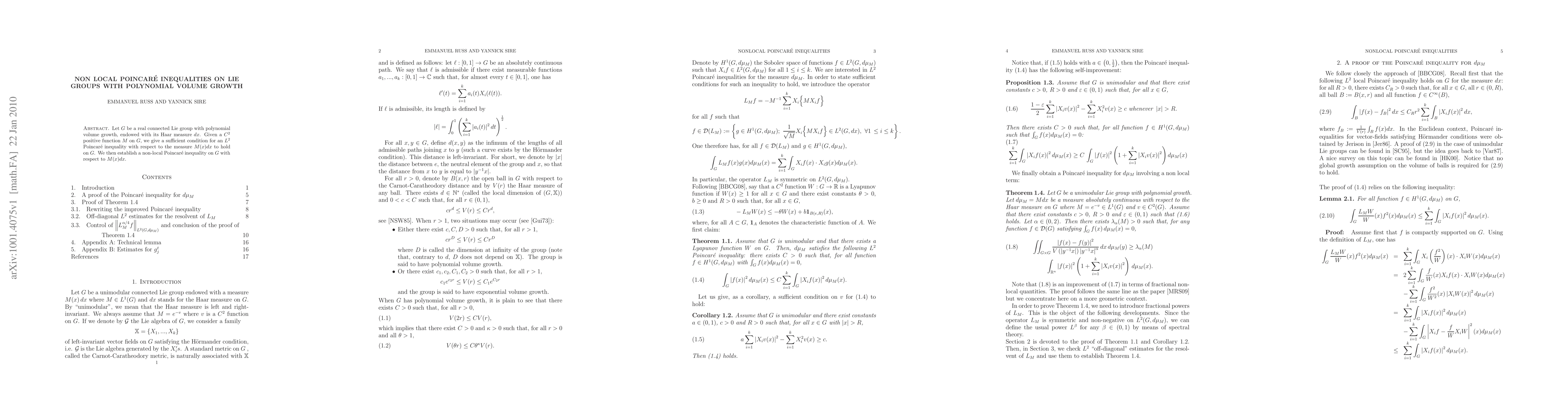 This paper provides a sufficient condition for an $L^2$ Poincaré inequality to hold on a real connected Lie group with polynomial volume growth, under a $C^2$ positive function $M$. It also establishes a non-local Poincaré inequality on the group with respect to the measure $M(x)dx$.
